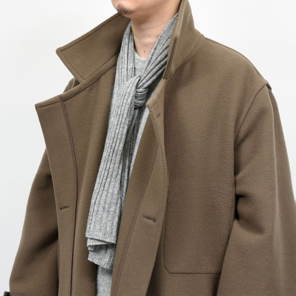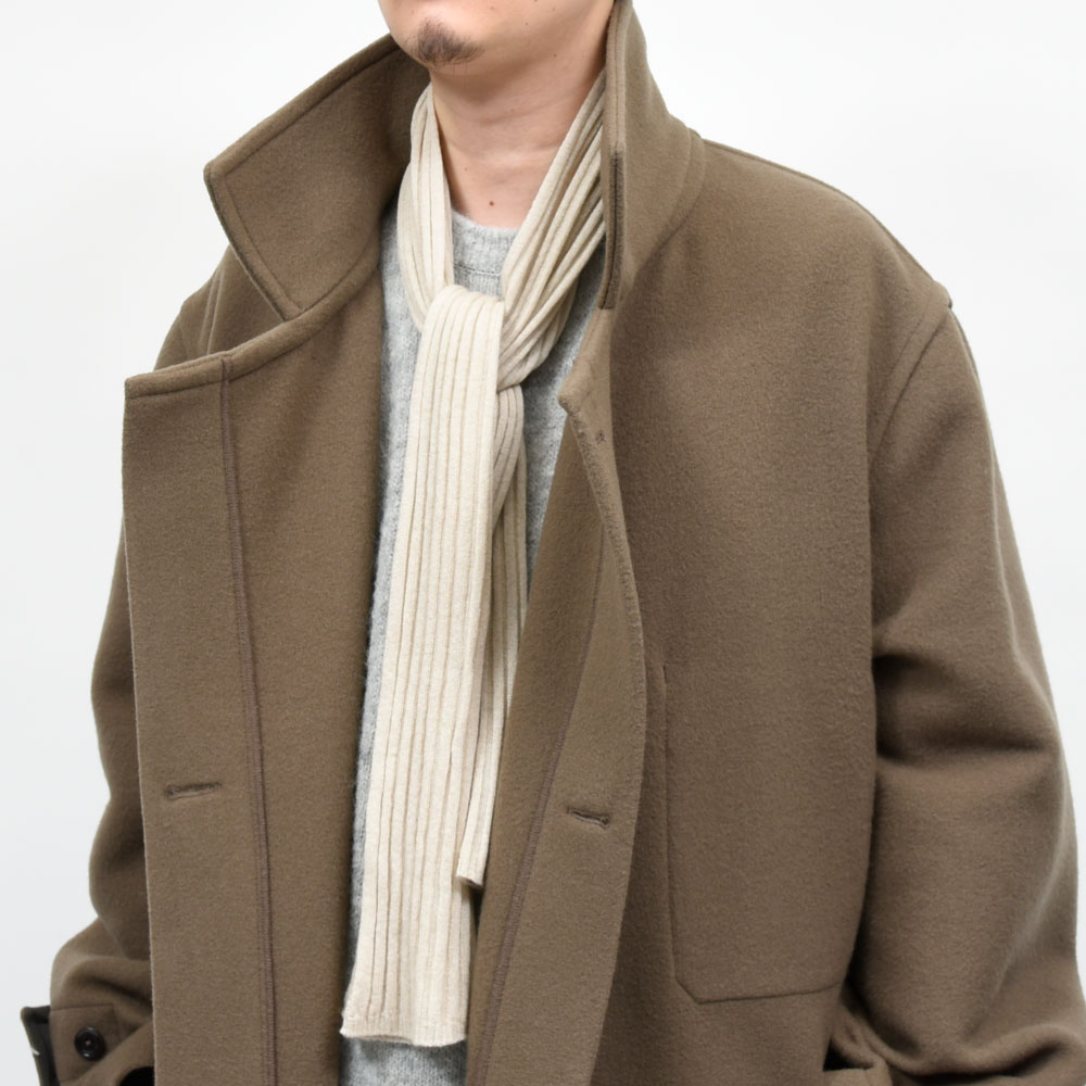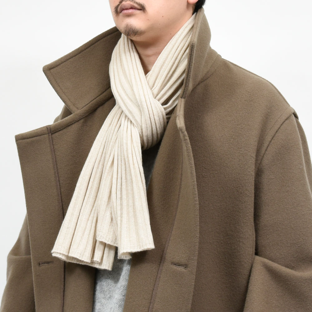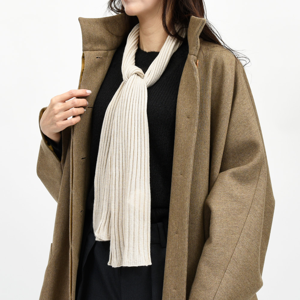 ご覧の通りリブ編みのタイプになっていますが、非常に柔らかく甘めの編みになっていますのでタッチはとても優しいく、それが見栄えにもつながっています。秋冬のスタイルのワンアクセントとして重宝するアイテムだと思います。