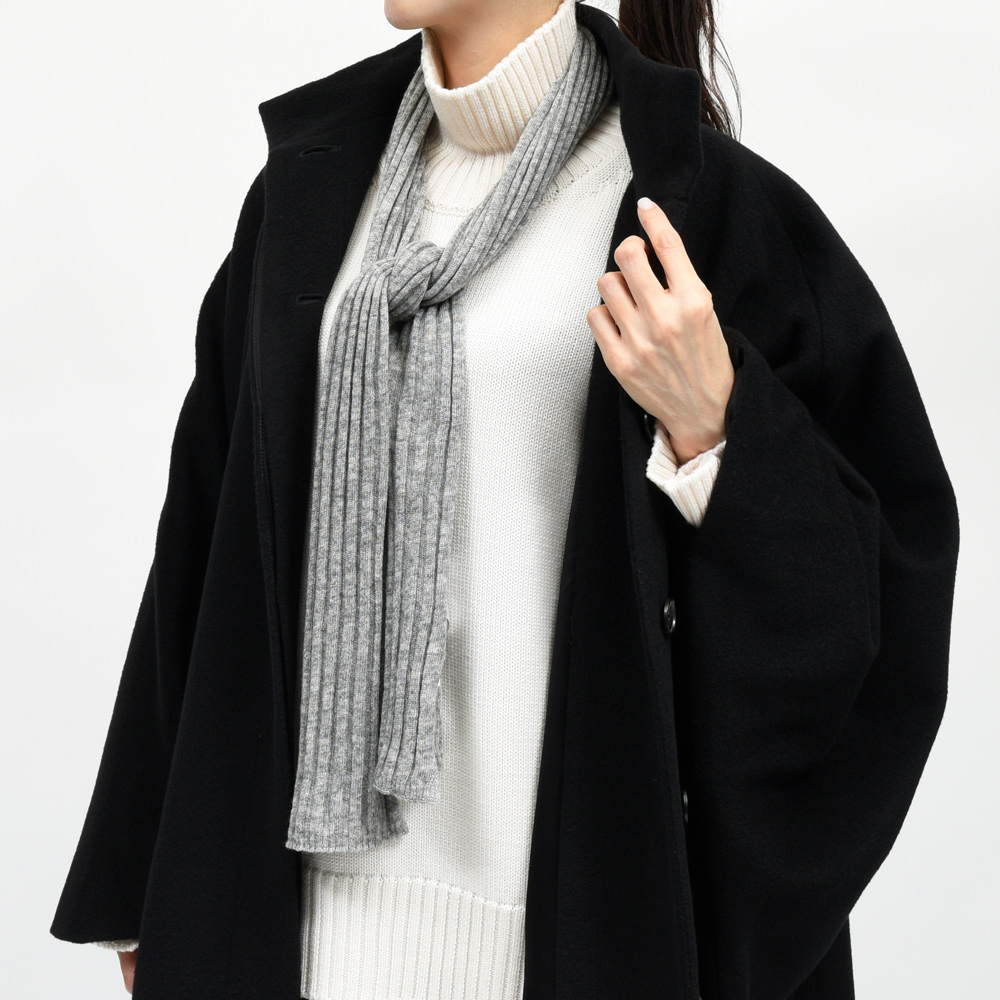 AMBELL(アンベル)のカシミヤシルクストール、リブ編みの凹凸感が巻いた時にアクセントとなってくれる逸品。カシミアシルクを用いていながらこのプライスという所にも驚きを隠せません。