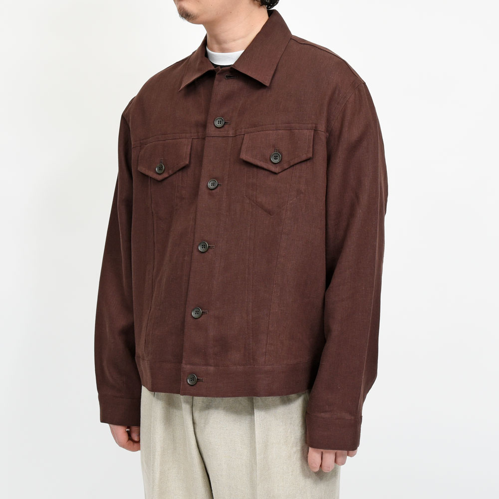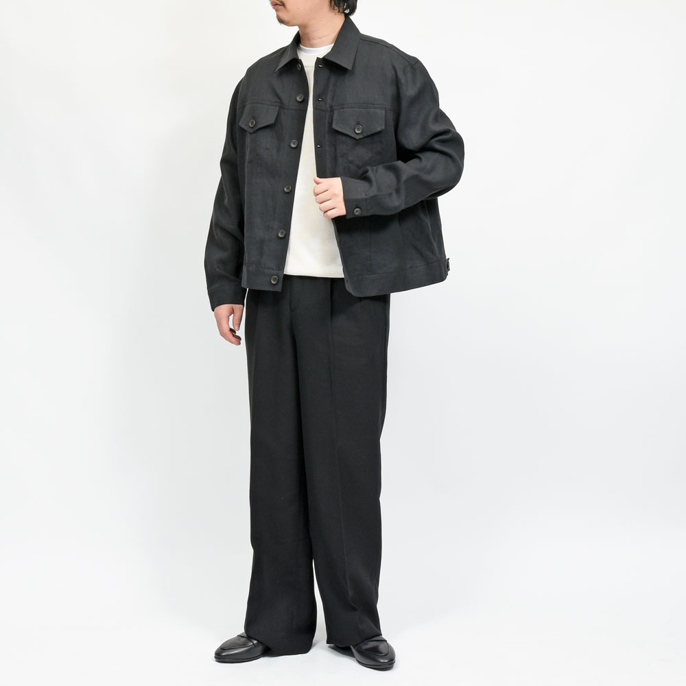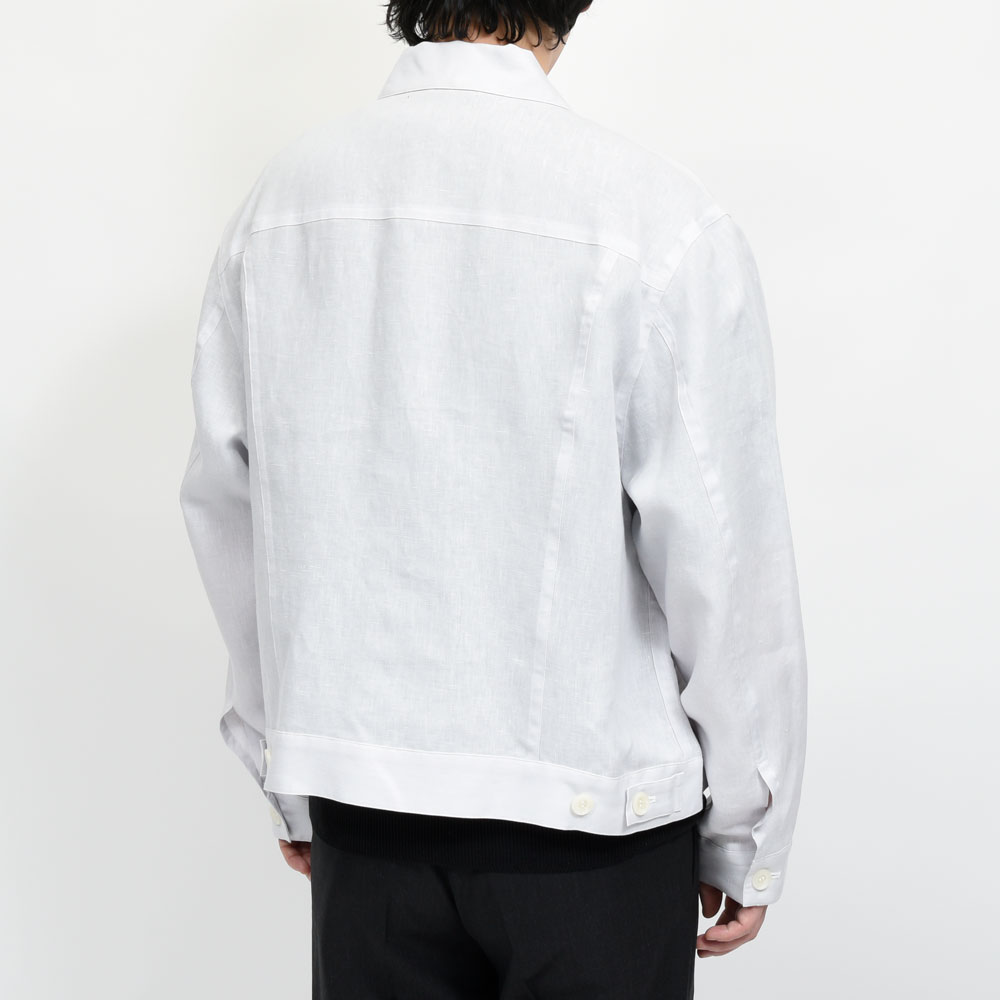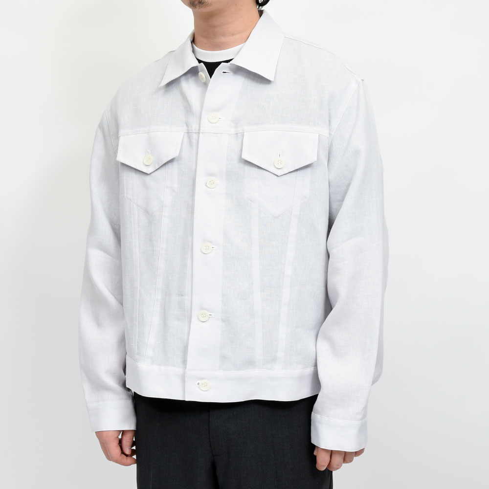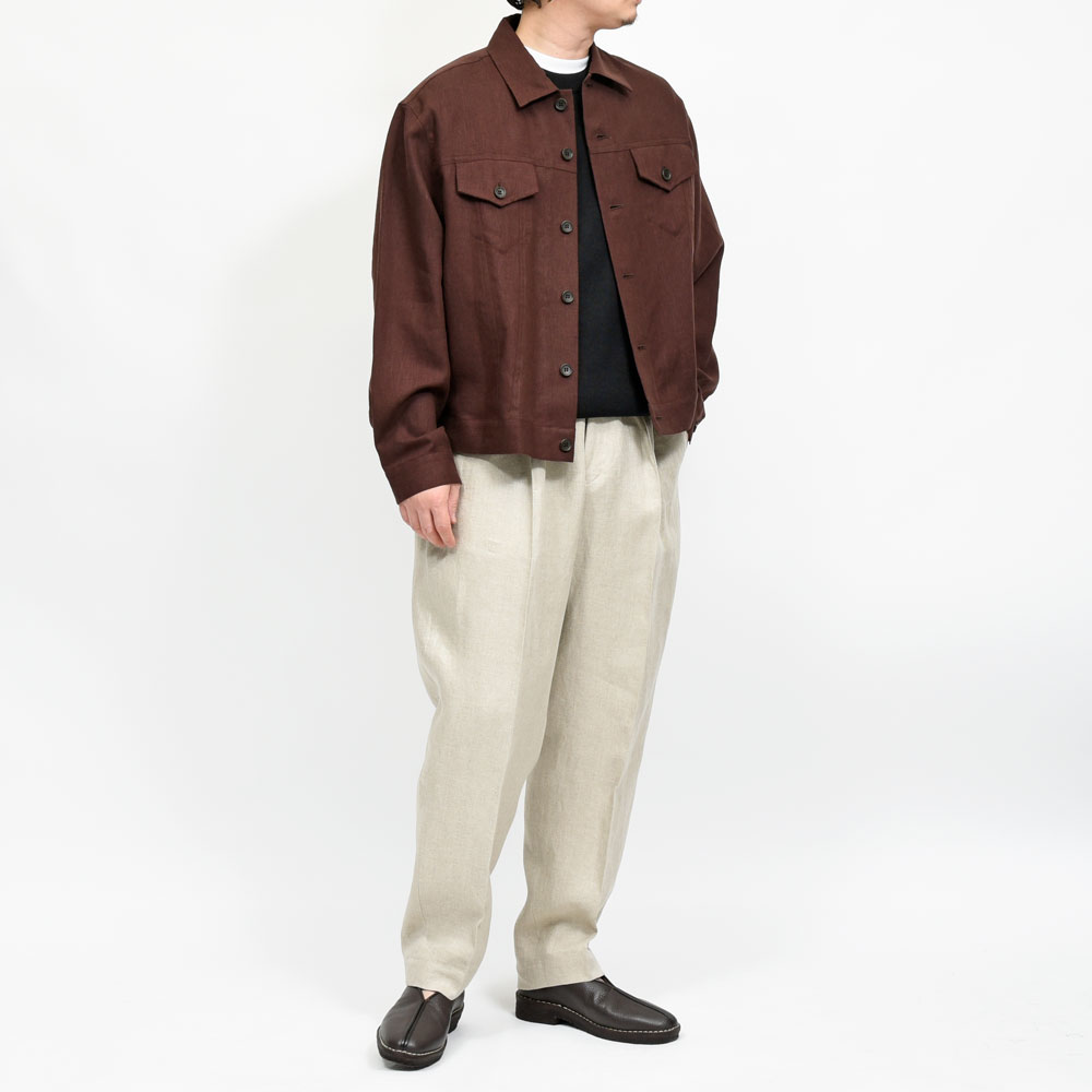 そもそも汎用性の高いトラッカージャケットですが、素材をリネンにすることでシャツのような感覚で気軽に羽織ることができる一着になっています。