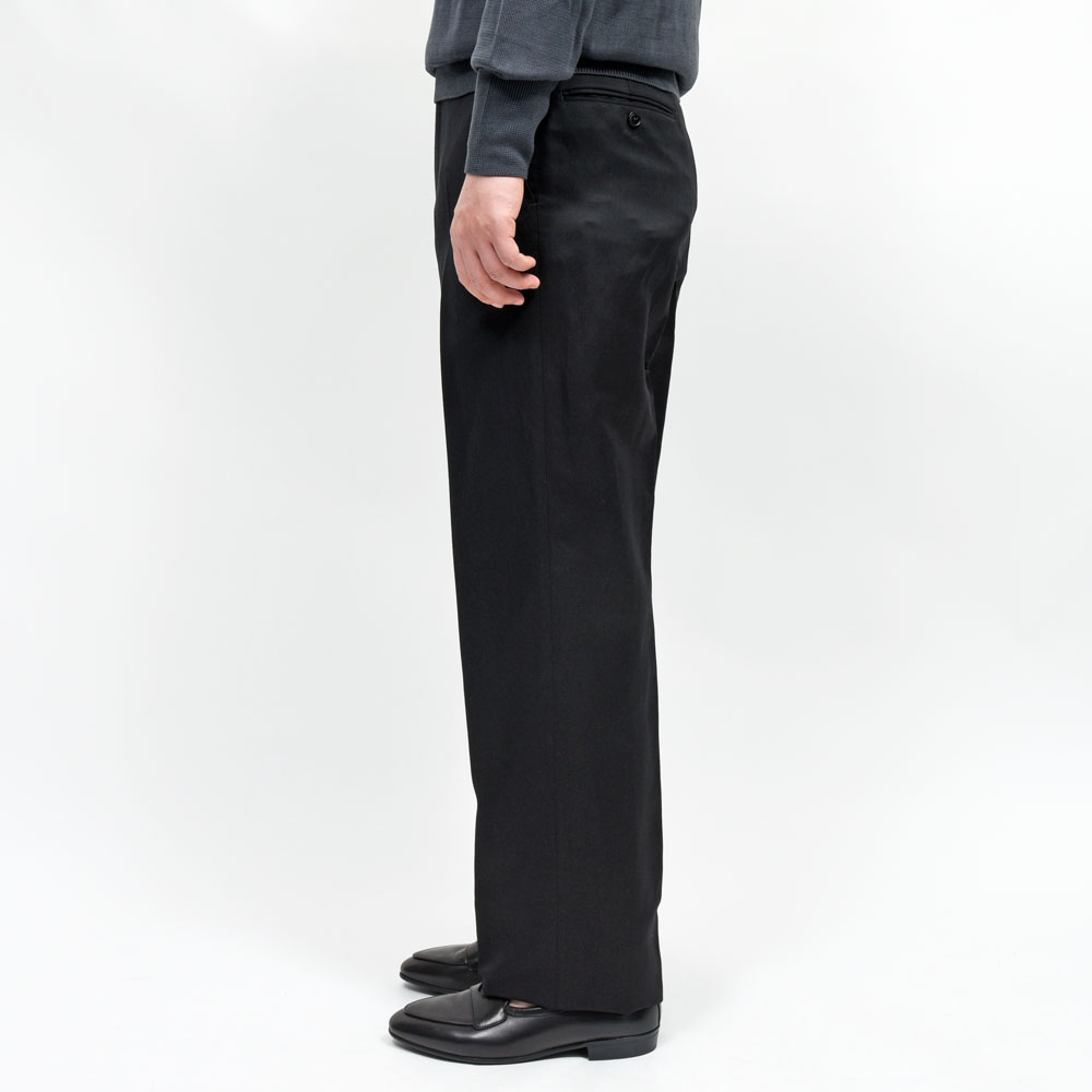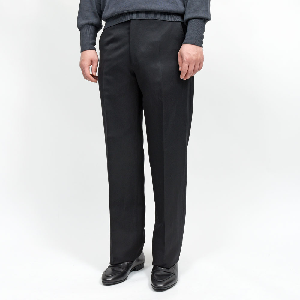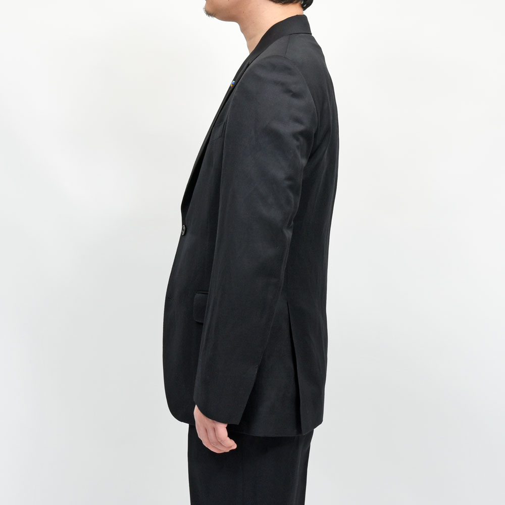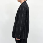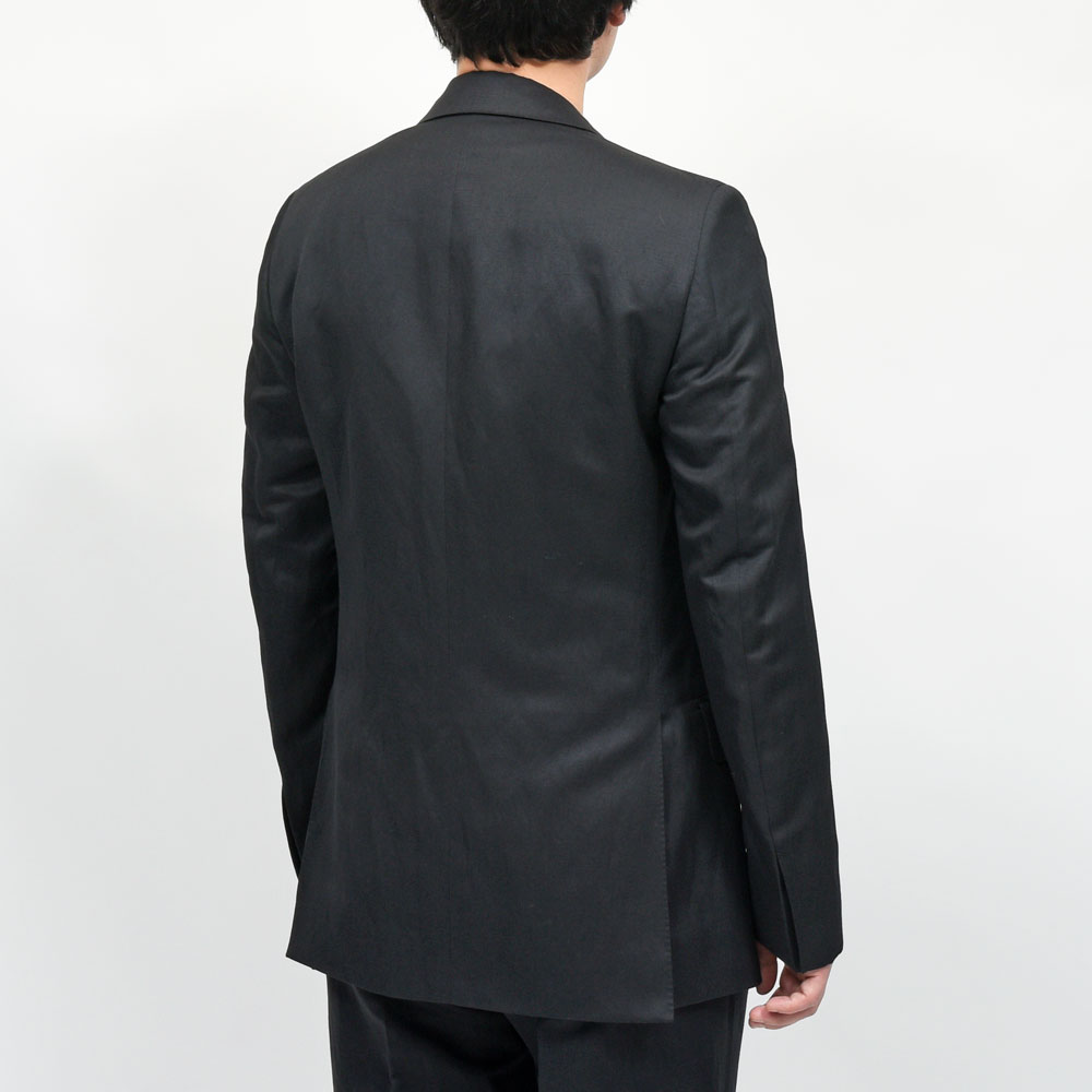 Belvest(ベルベスト)が提案するファッションとしてのブラックスーツという感じですね。ウールリネンを採用した生地はほんのり光沢感があり、リネンを効果的に採用する事で艶っぽくなり過ぎず、自然と落ち着いた見え方に。