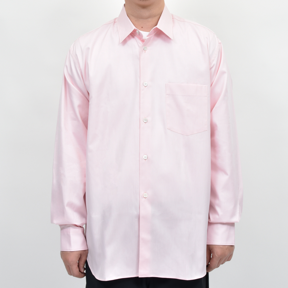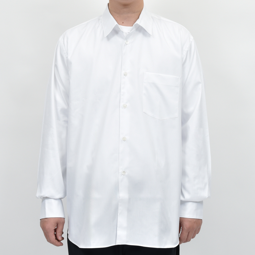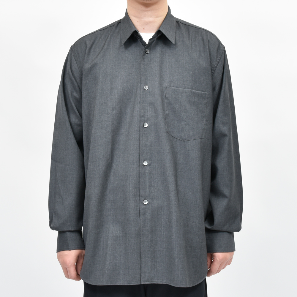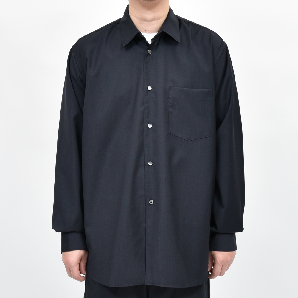 シルエットはドレープを感じさせるWIDE CLASSICのタイプ、襟は小ぶりで、サラッとポケットも装備、背中はボックスプリーツを採用。カジュアルシャツではありますがその上品さでスタイルの見え方をクリーンにしてくれる役目も果たしてくれています。