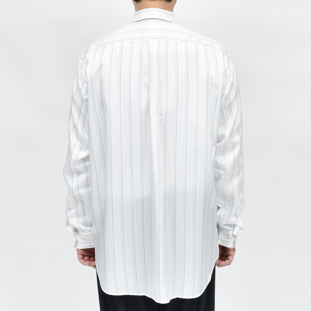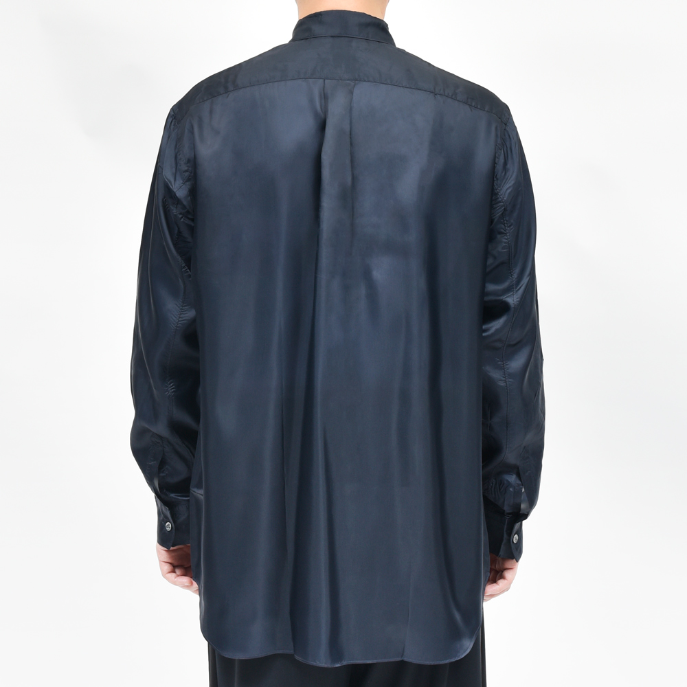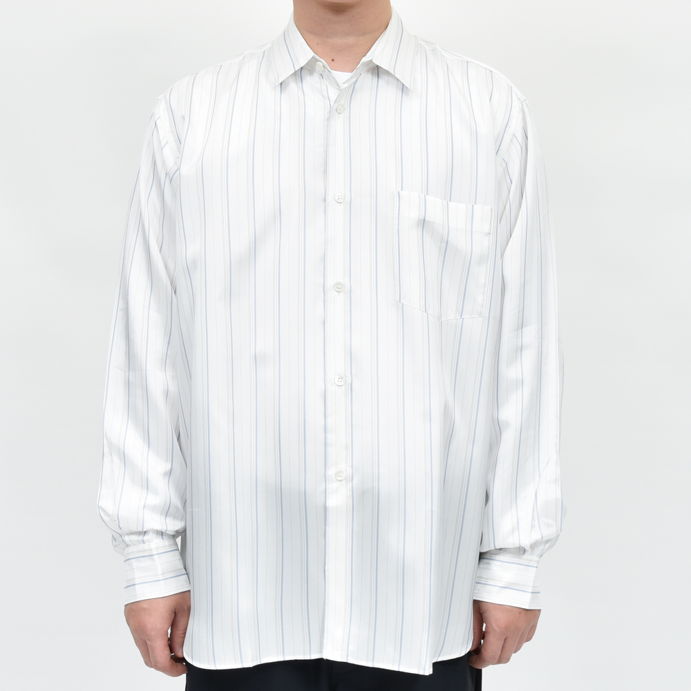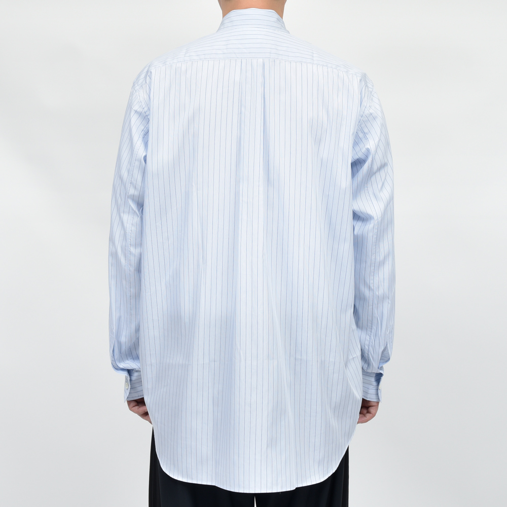 シルエットはドレープを感じさせるWIDE CLASSICのタイプ、襟は小ぶりで、サラッとポケットも装備、背中はボックスプリーツを採用。カジュアルシャツではありますがその上品さでスタイルの見え方をクリーンにしてくれる役目も果たしてくれています。