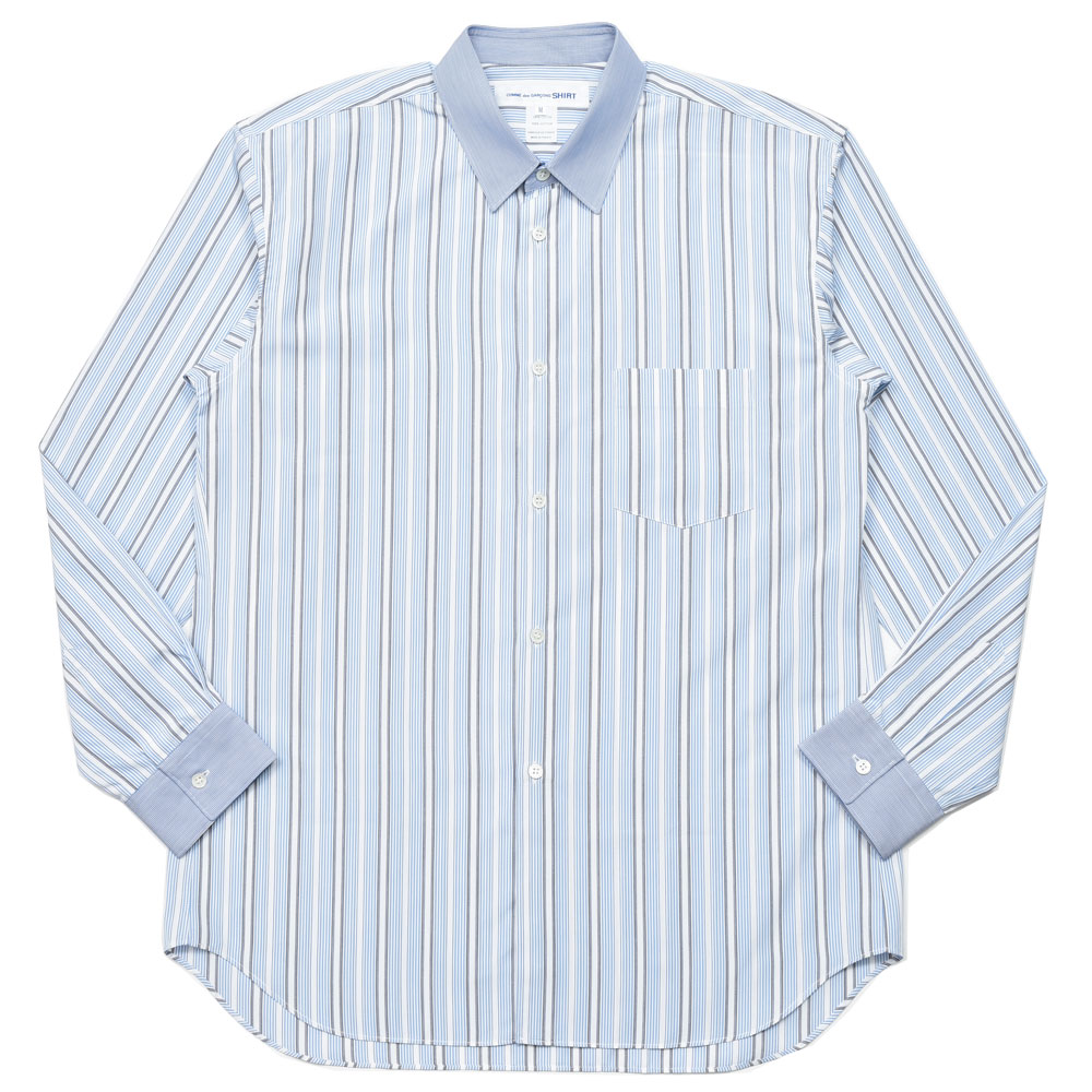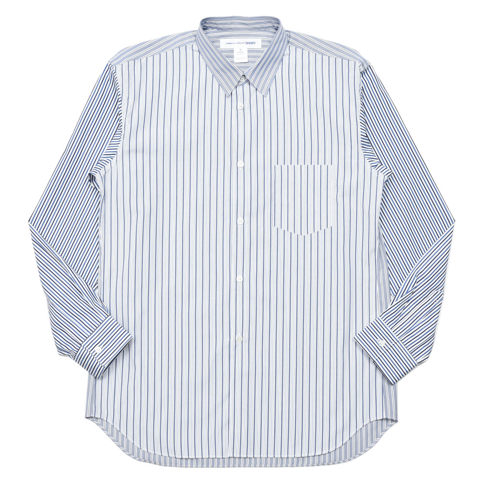 COMME des GARCONS SHIRT(コムデギャルソンシャツ)のストライプシャツ、こちらは襟とカフのみ別のストライプに切り替えたほんのり変化球のタイプになります。