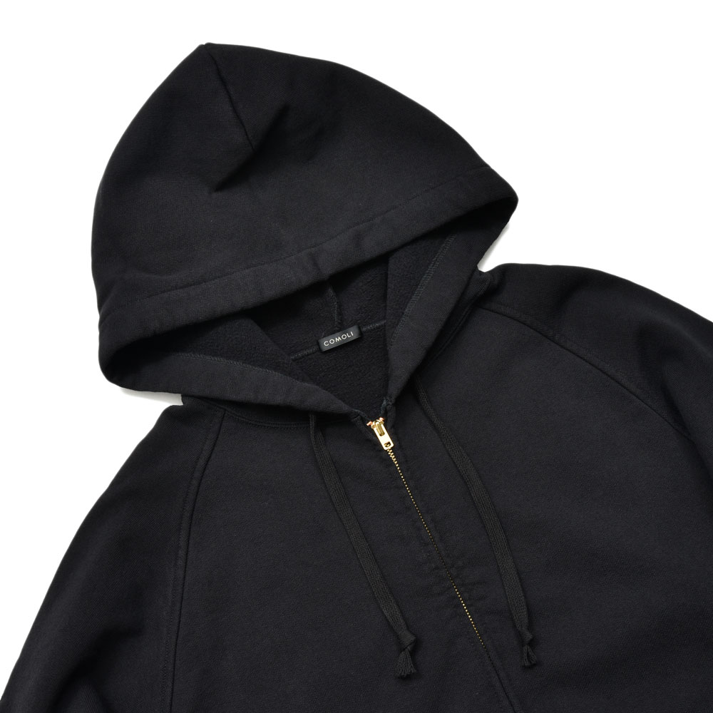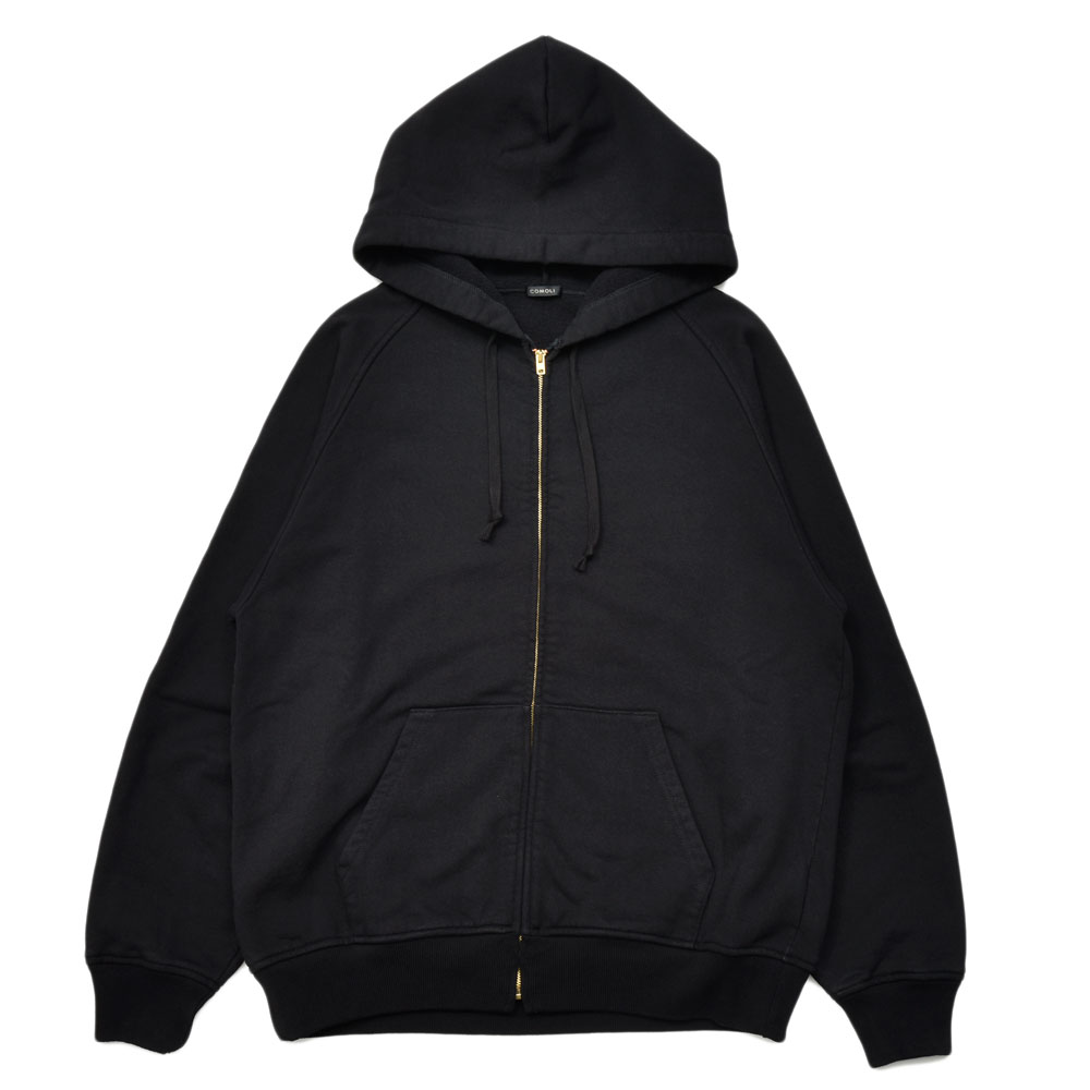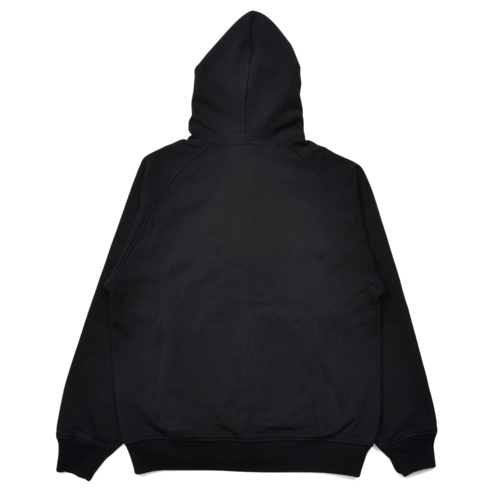 定番的なコットン裏毛を採用したブラックのフーディ、フェードさせずシンプルに洗いをかけたタイプになっていまして、よりシンプルに、よりクリーンな印象に仕上がっています。