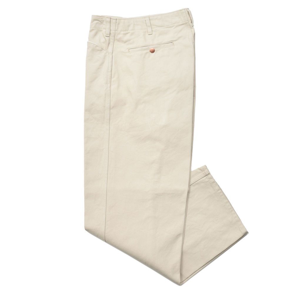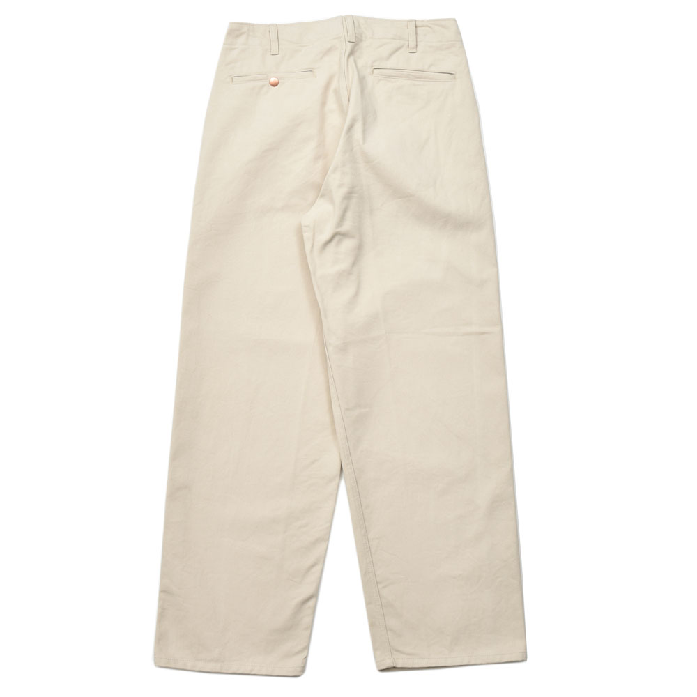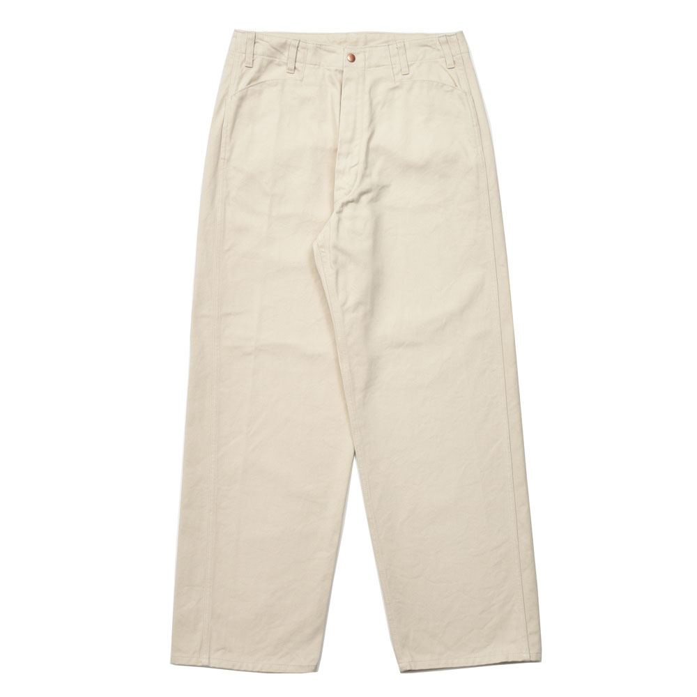 やや起毛感のあるコットンツイル生地を採用したワークパンツ、しっかりとした生地感が何処かヴィンテージのムードを感じさせるような一本になっています。