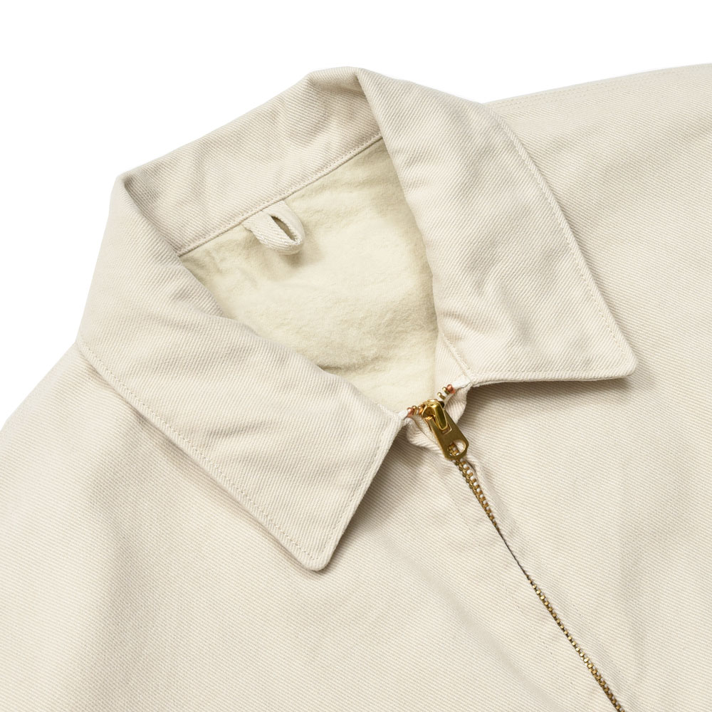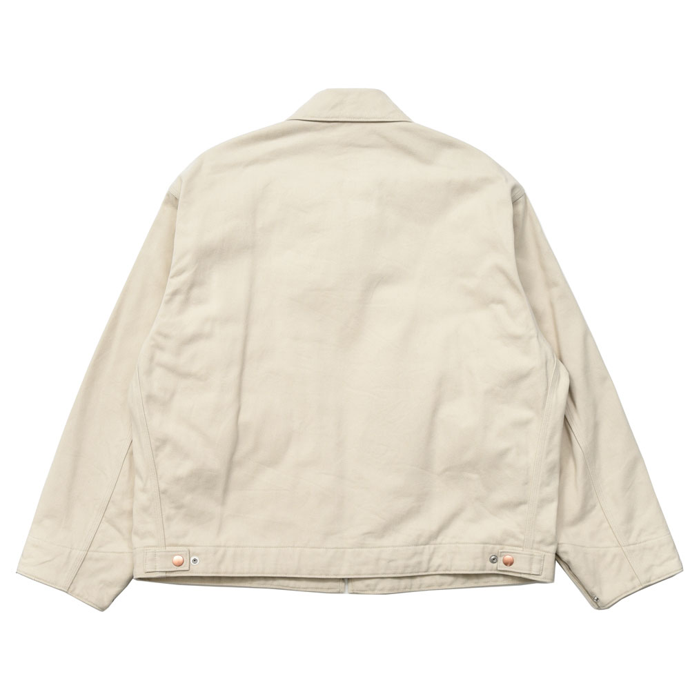 生地感は懐かしくもあり、今見ると新鮮に映る微起毛のコットンツイルを採用、いわゆるヴィンテージのワークブルゾンのムードがありつつも、パターンはしっかりと現代的になっています。