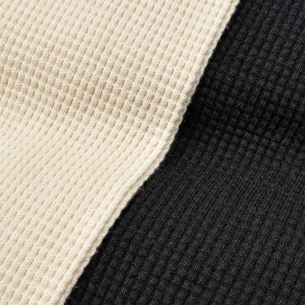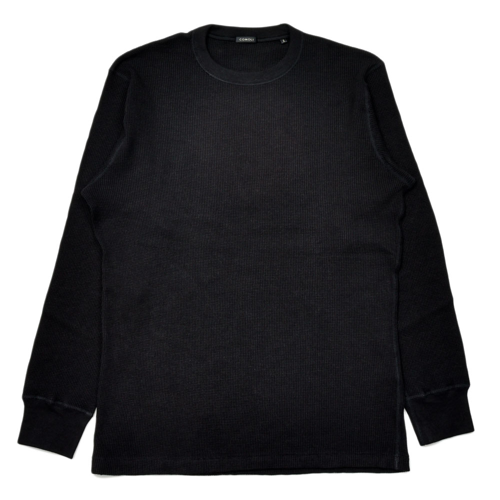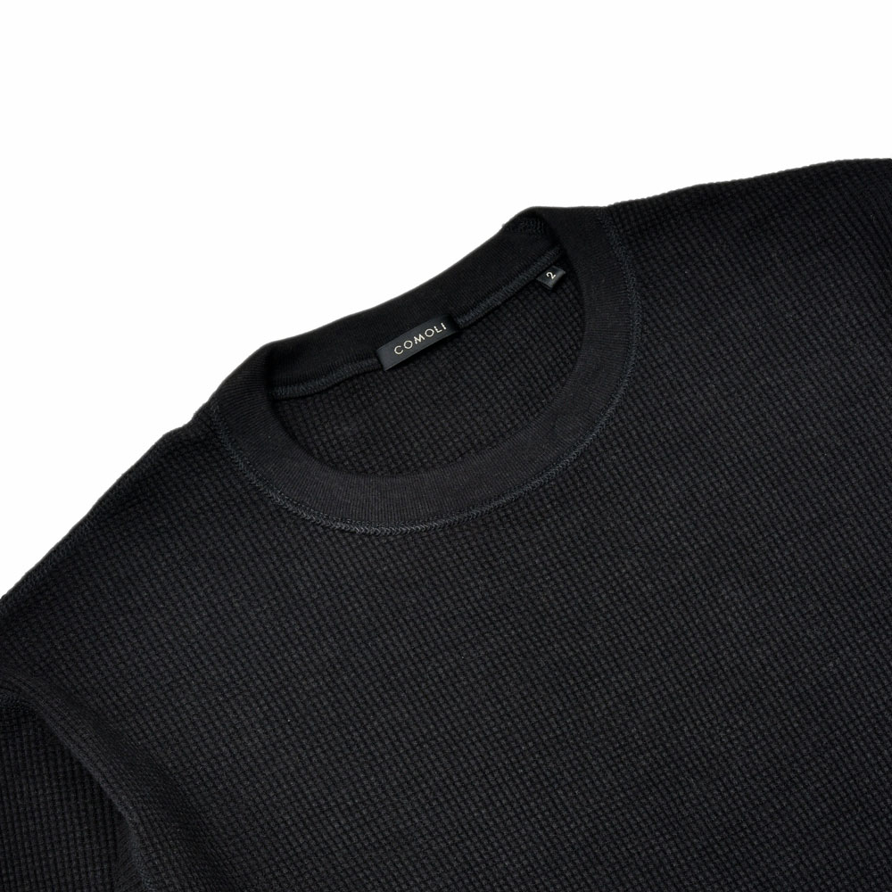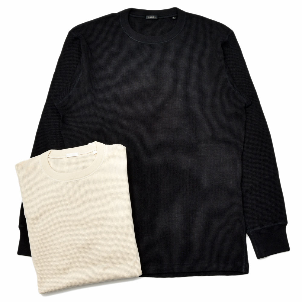 気を衒わずストレートな表現で提案された感のあるワッフルクルーネック、シルエット自体も同ブランドの中で考えるとややスマート、あるいはレギュラーフィットという感じでしょうか。故に着用するサイズ感としては大きくする感じではなく、あくまでもジャストのものを選ばれることをお勧めします。