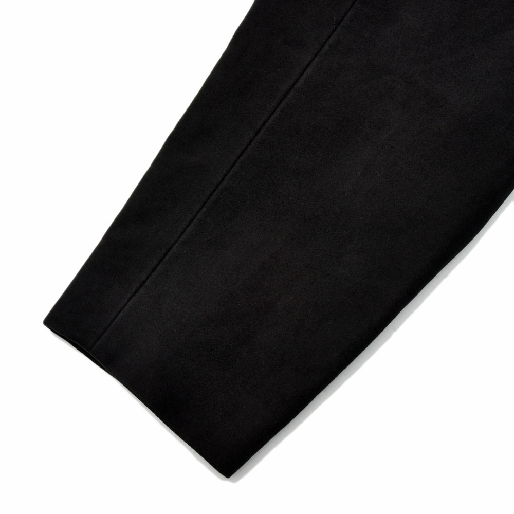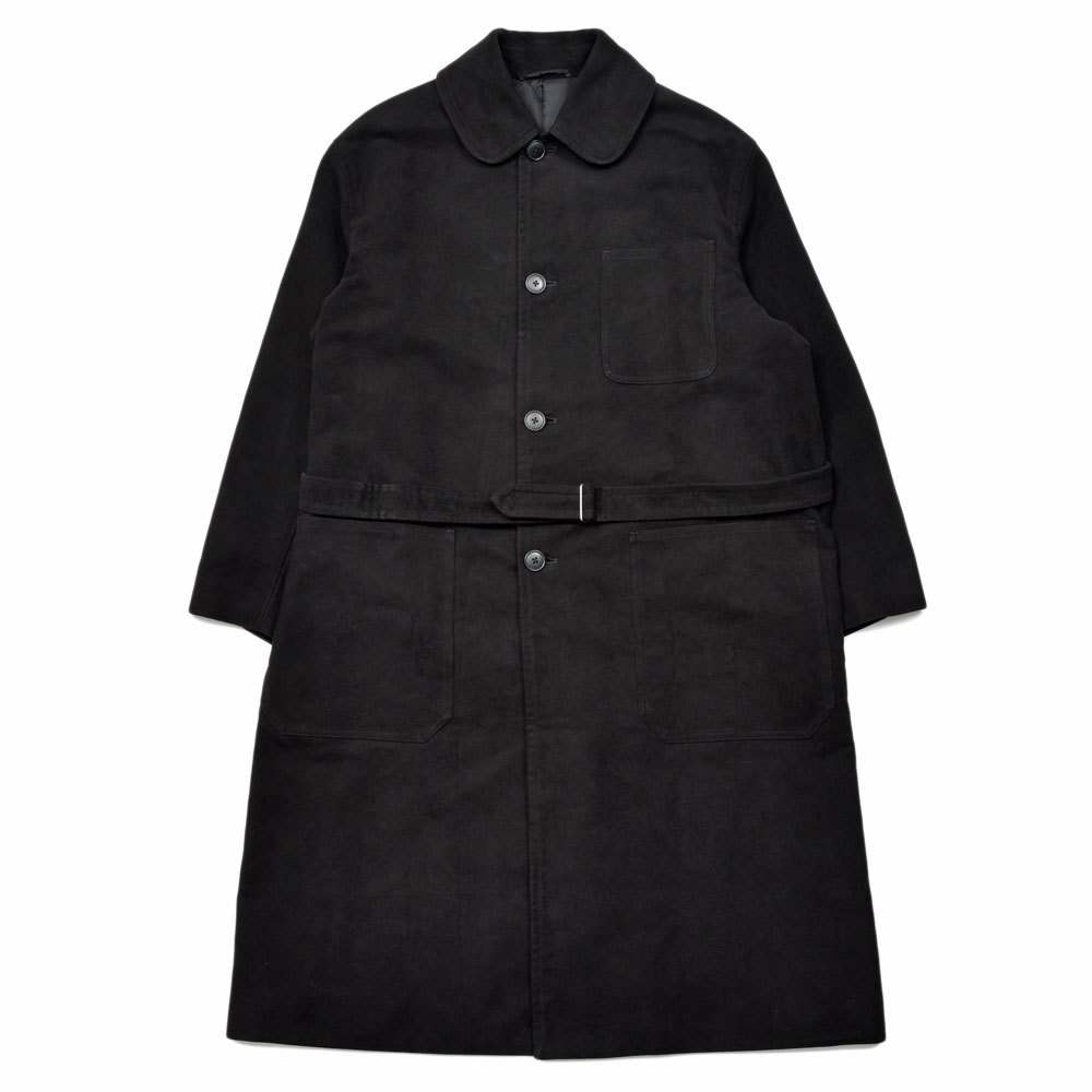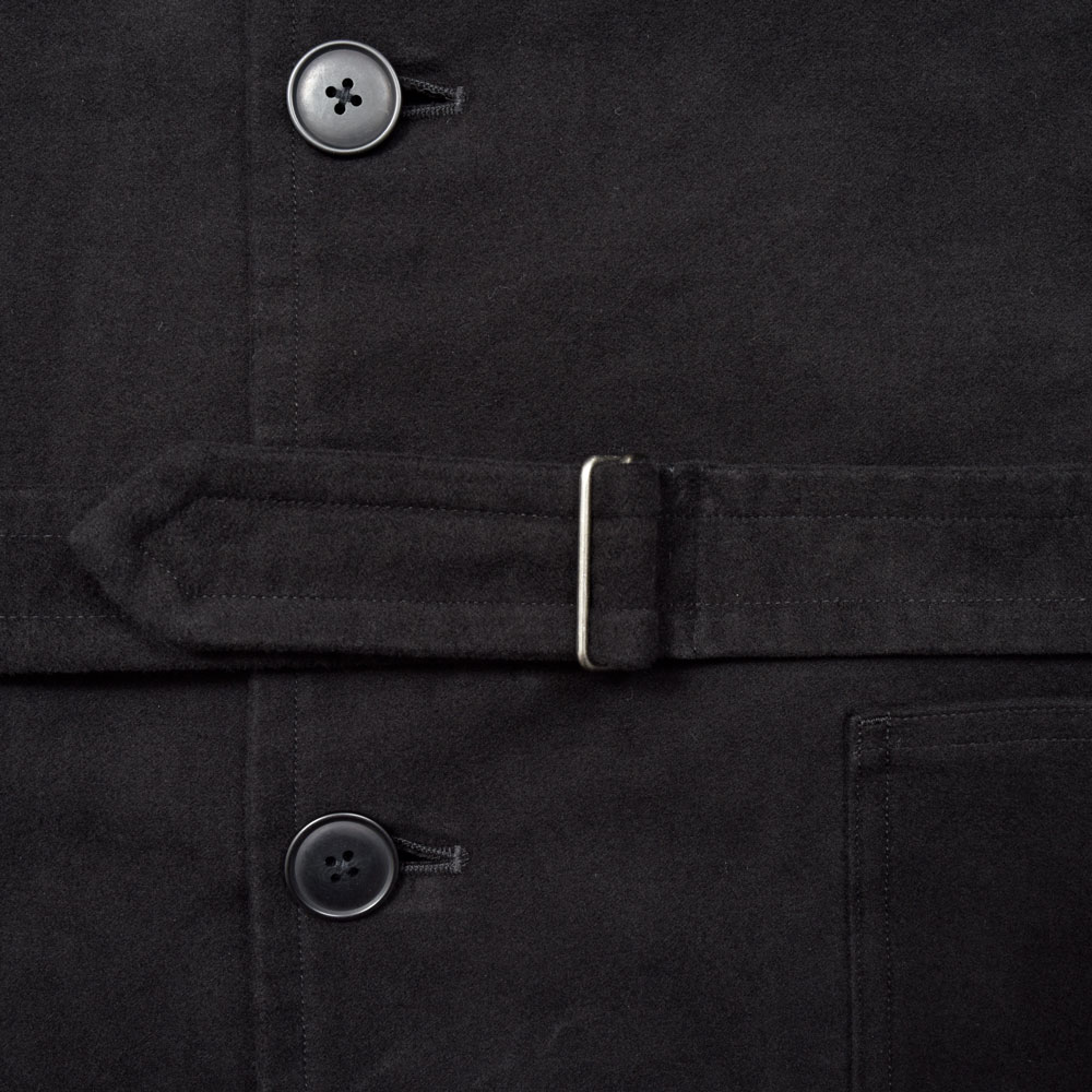 カジュアルなコートではありますがモールスキンの生地が非常に滑らかで、かつブラックということもあり上品さが付加されている印象です。