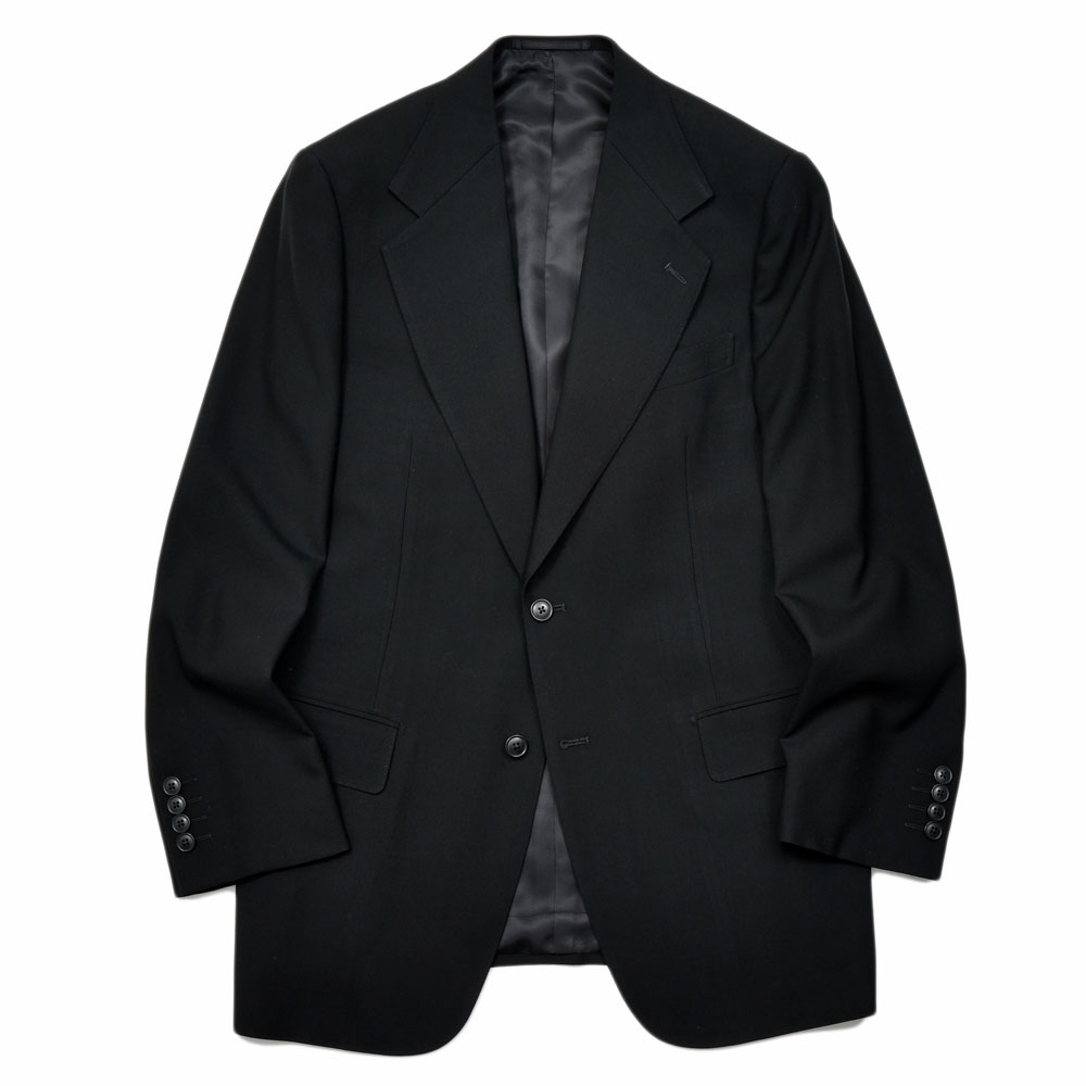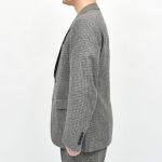 ワイドラペルにゴージ位置は低め、コンケープドショルダー、パンツはストレート気味のタイプに。袖を通すと仕立ての良いファクトリーで作られていることがよくわかる一着です。