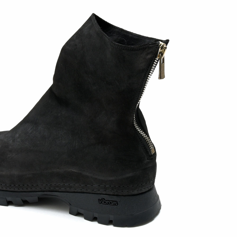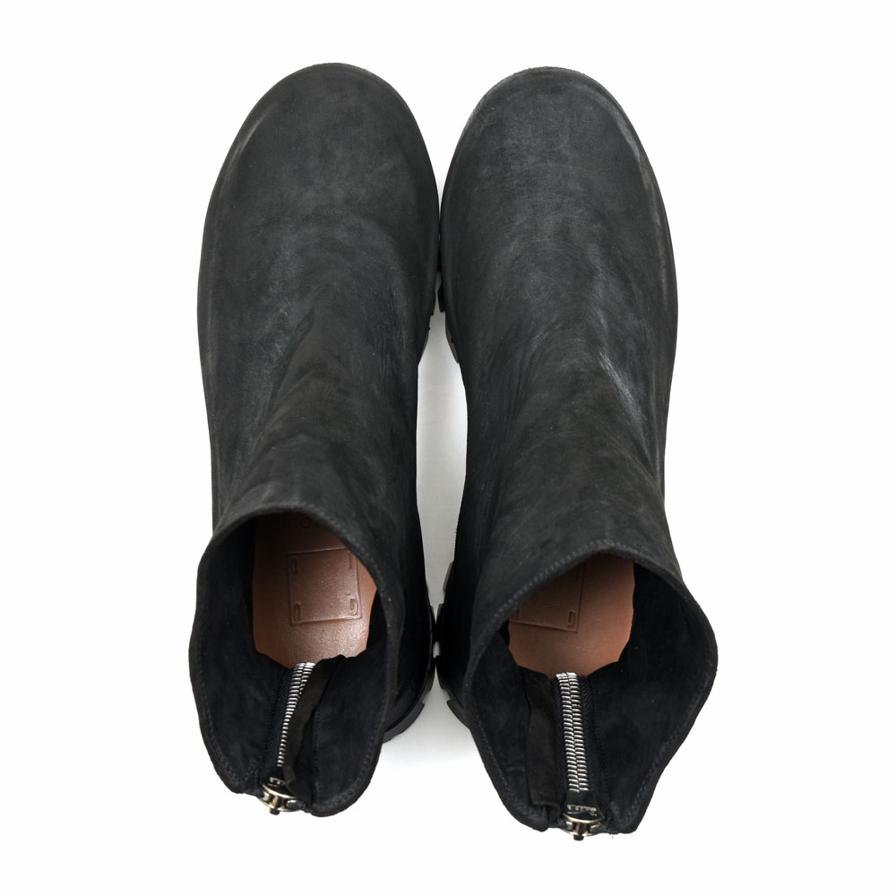 シルエット自体はお馴染みのGUIDI (グイディ)のフォルムになっていまして、VS01をバックジップ仕様に変更したモデルになります。ヌバックならではの表情が足元に安定感と緊張感を同時にもたらしてくれます。