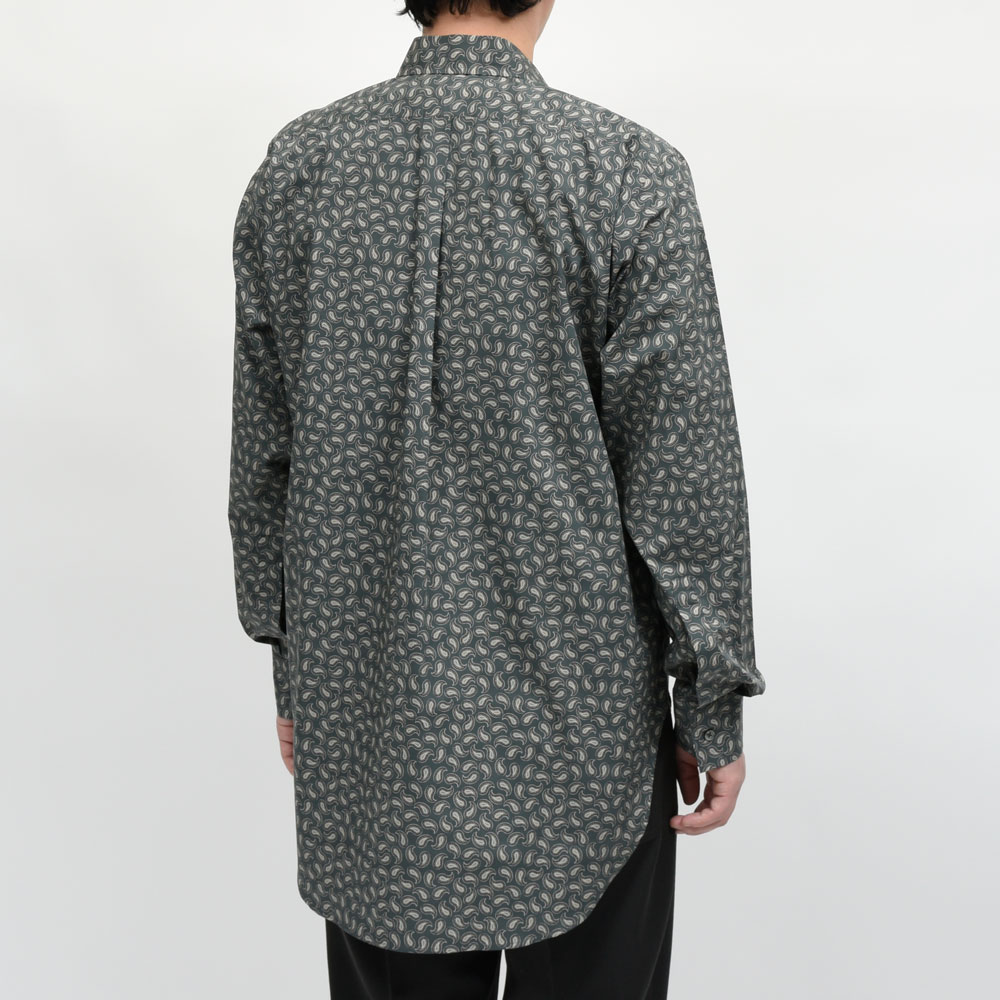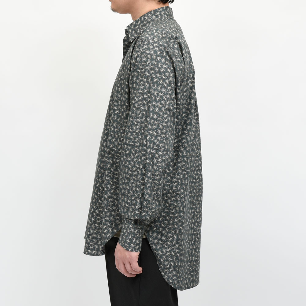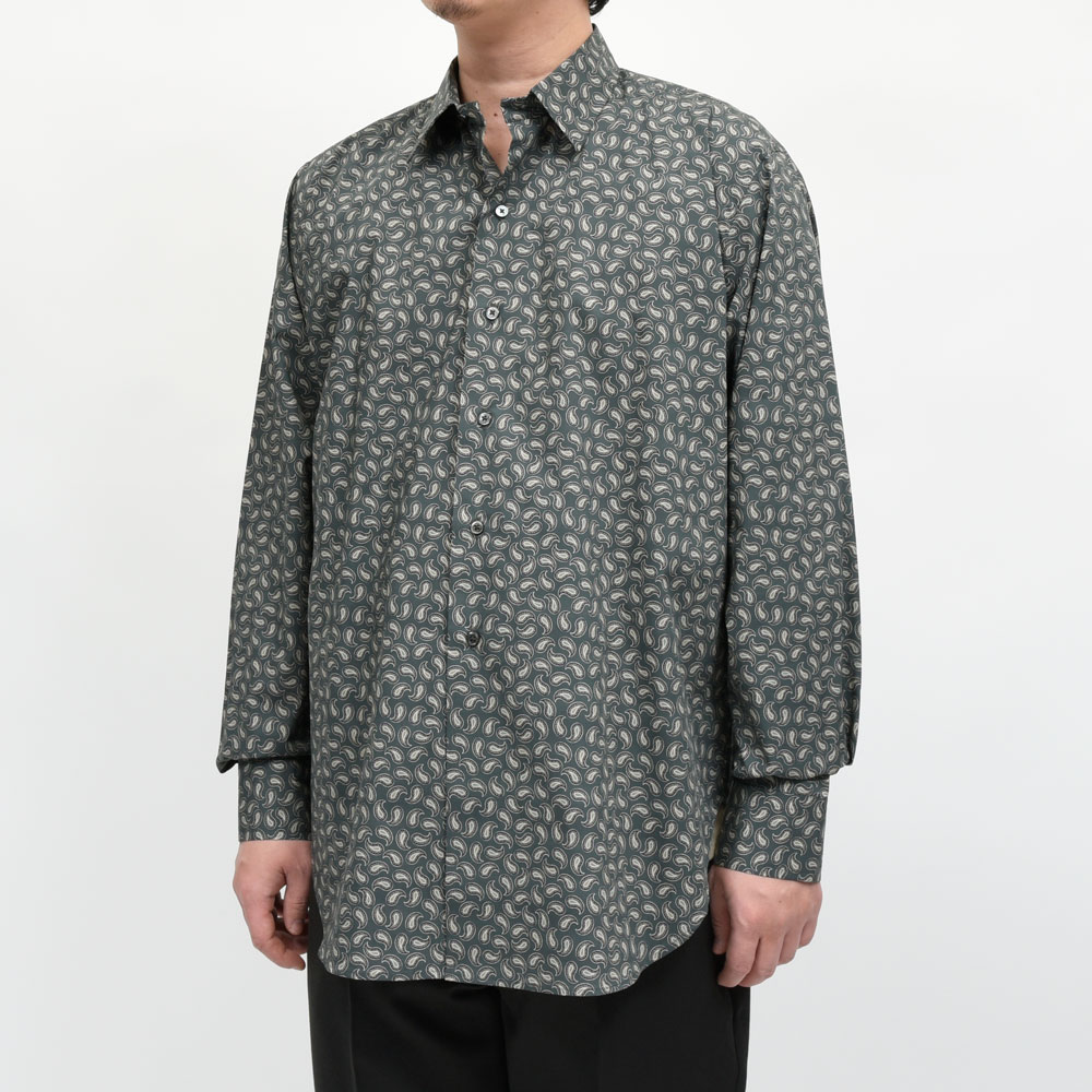 何処かクラシカルなムードを感じさせる生地。イタリアファブリックメーカーのペイズリーのプリントを採用、ブランドのカラー表記はBlueになっていますが、ぱっと見はグレイッシュなグリーン、オリーブという感じでしょうか。総柄でありながらも、奇抜すぎず同ブランドのジャケットなどにも合わせやすい印象。