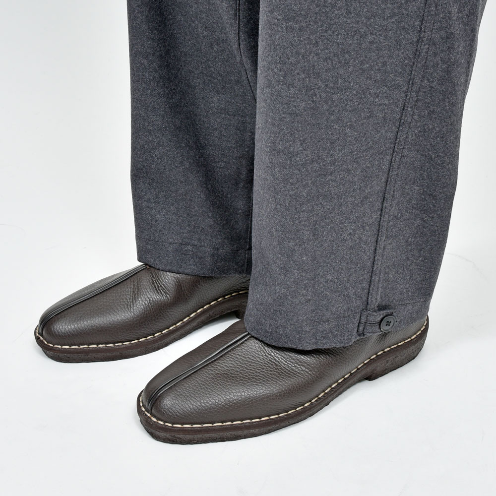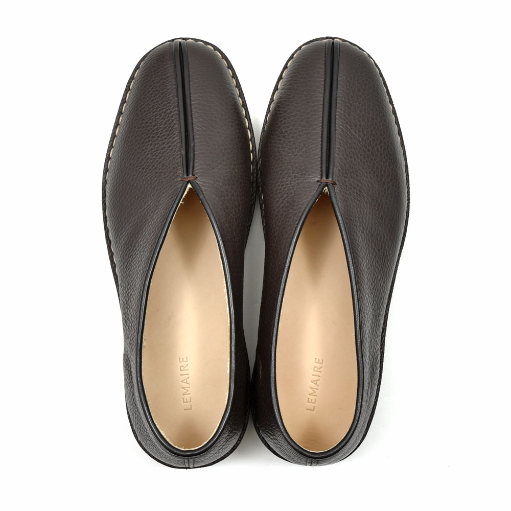LEMAIRE(ルメール)のフットウェアといえばこちらと言っても過言ではありません。アイコニックなシューズはシボ感のはっきりしたグレインレザー2枚をフロントで縫い合わせたシンプル且つ独自性のある一足。