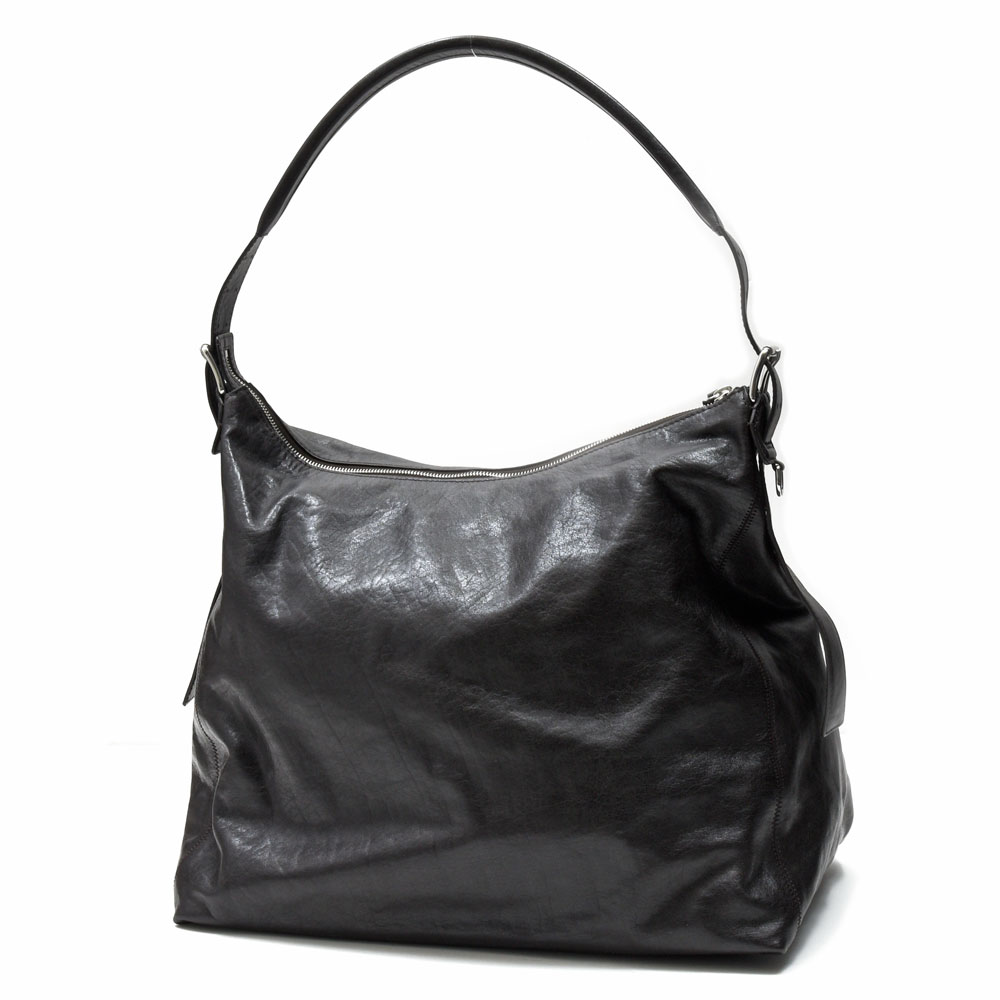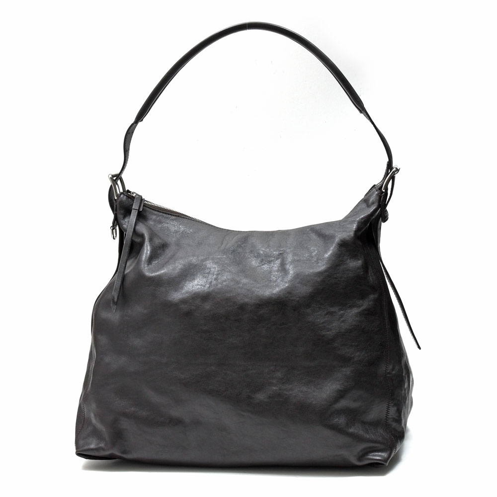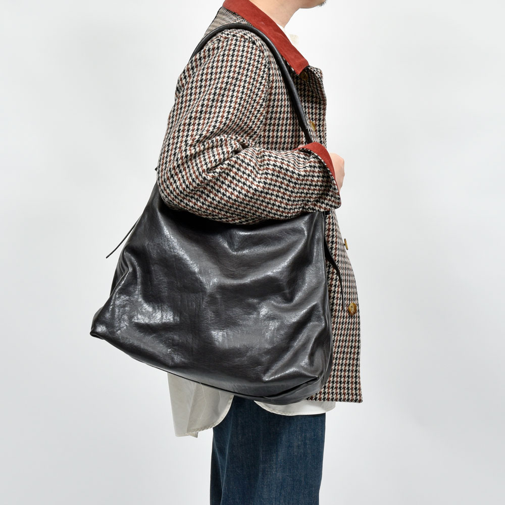 素材はベジタブルタンニングの牛革を採用、適度な光沢感と持った時に生まれる皺の雰囲気が素晴らしくスタイリングにもこなれたムードを付加してくれます。