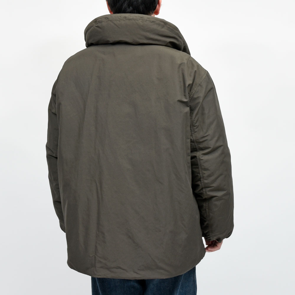 襟部分はバブルカラー仕様、チンストラップも付属しているので立てて着用することも可能となっています、これにより防寒性もアップ。ありそうでないバランス感の一着、冬場を乗り越えるための友としてふさわしい存在だと思います。