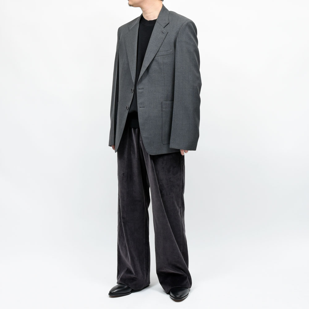 シルエットは絞りを入れすぎず縦のラインを強調、アームにはクリースを入れることによってよりキリッとした緊張感をプラス。