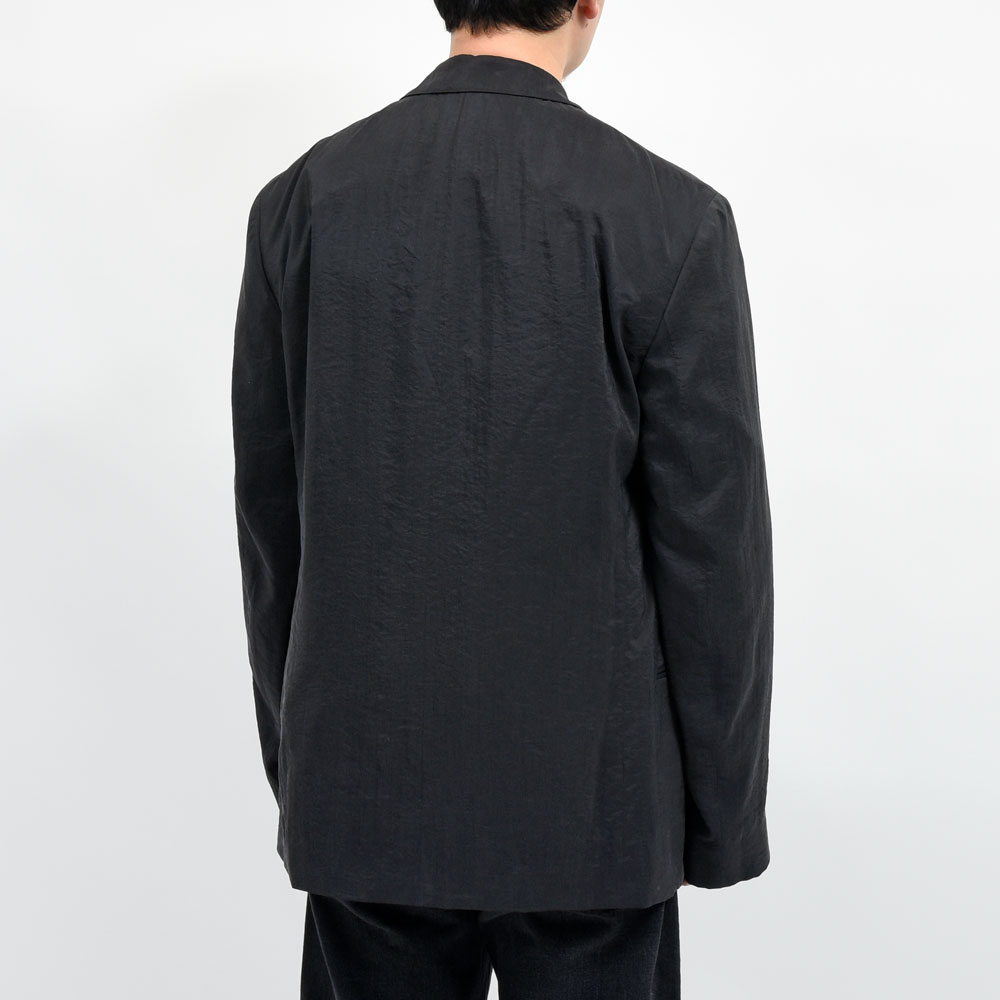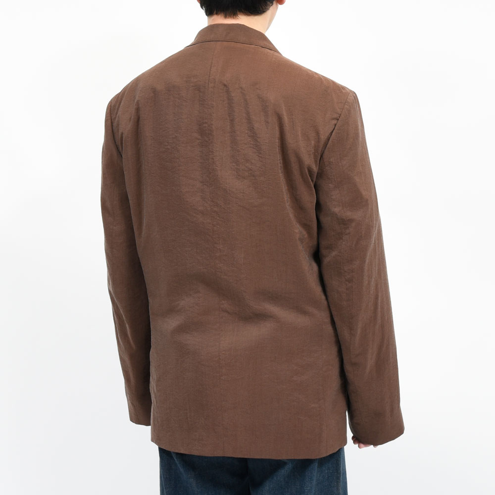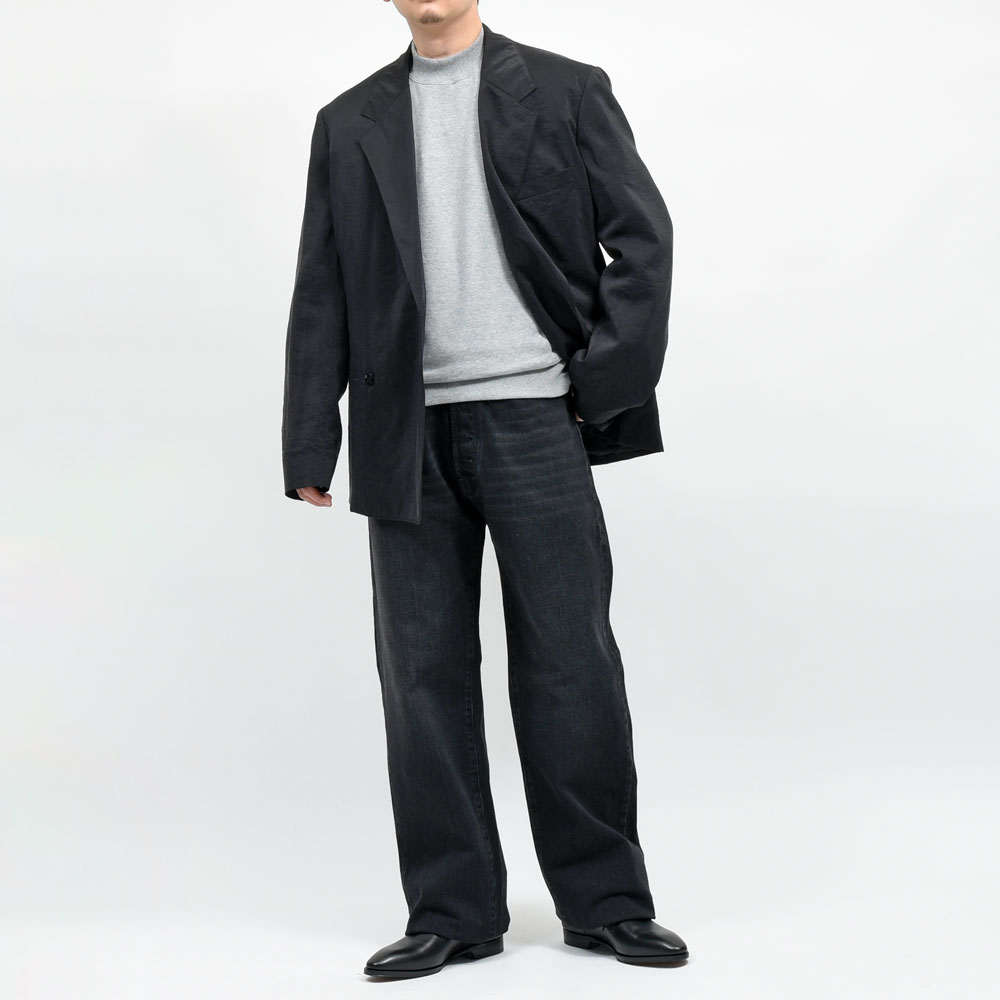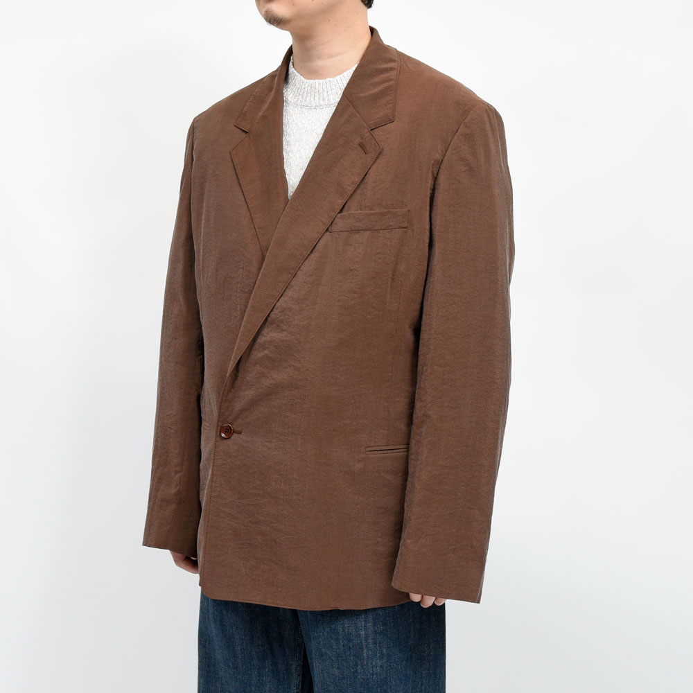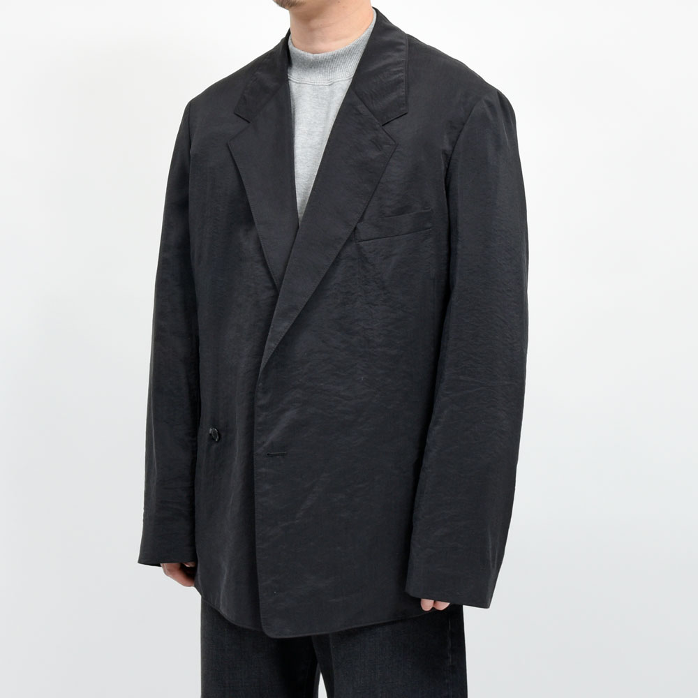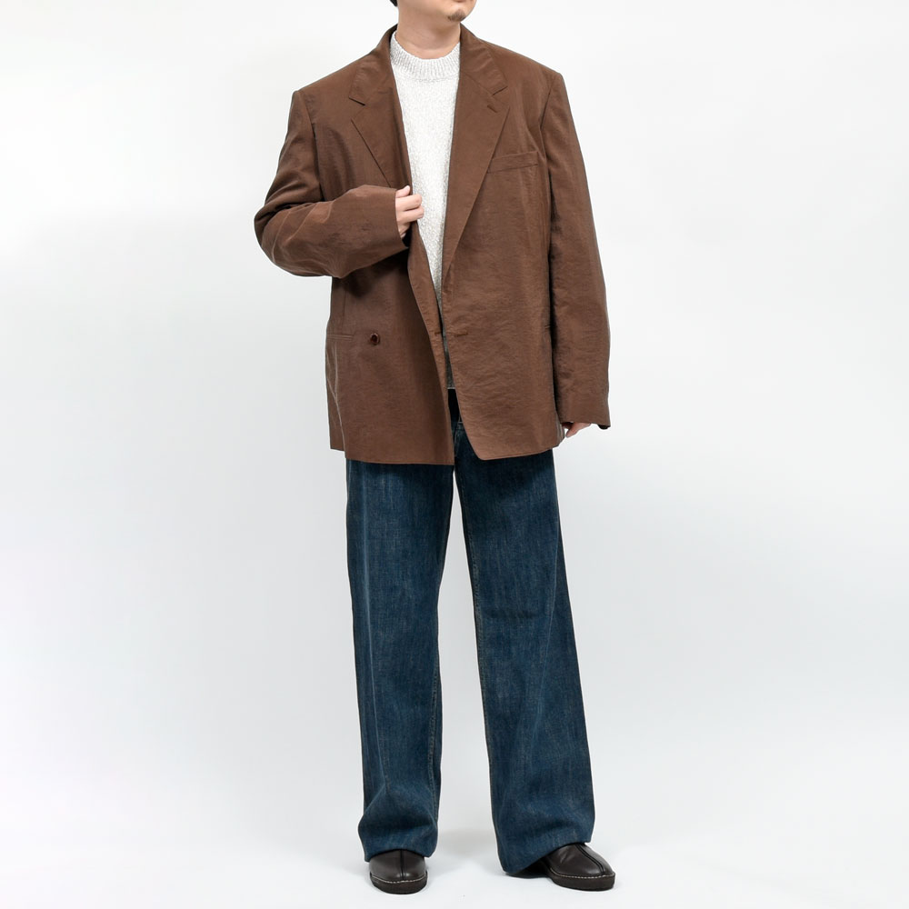 伝統的な仕立ての世界を再構築したい、、、というLEMAIRE(ルメール)の思想をストレートに体現したソフトダブルブレステッドジャケット。力を抜いたムードを加速している理由は素材をドライシルクを採用しているからでして、細かなシワが全体のムードの良さを底上げしてくれています。