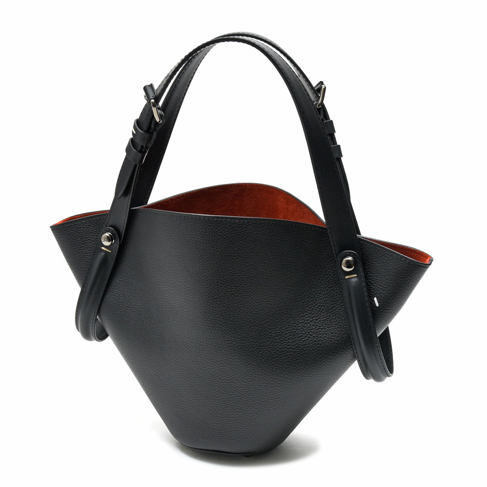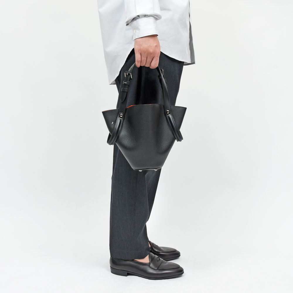 素材は柔らかなペプルドカーフスキンを採用、ハンドルは2タイプになっています。バッグの構成としては比較的シンプルではありますが、素材のクオリティとディティールのバランスによって品の良さが高まっています。
