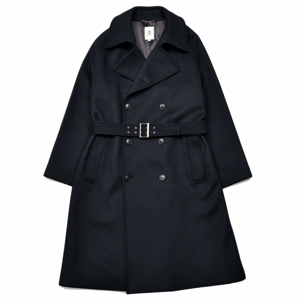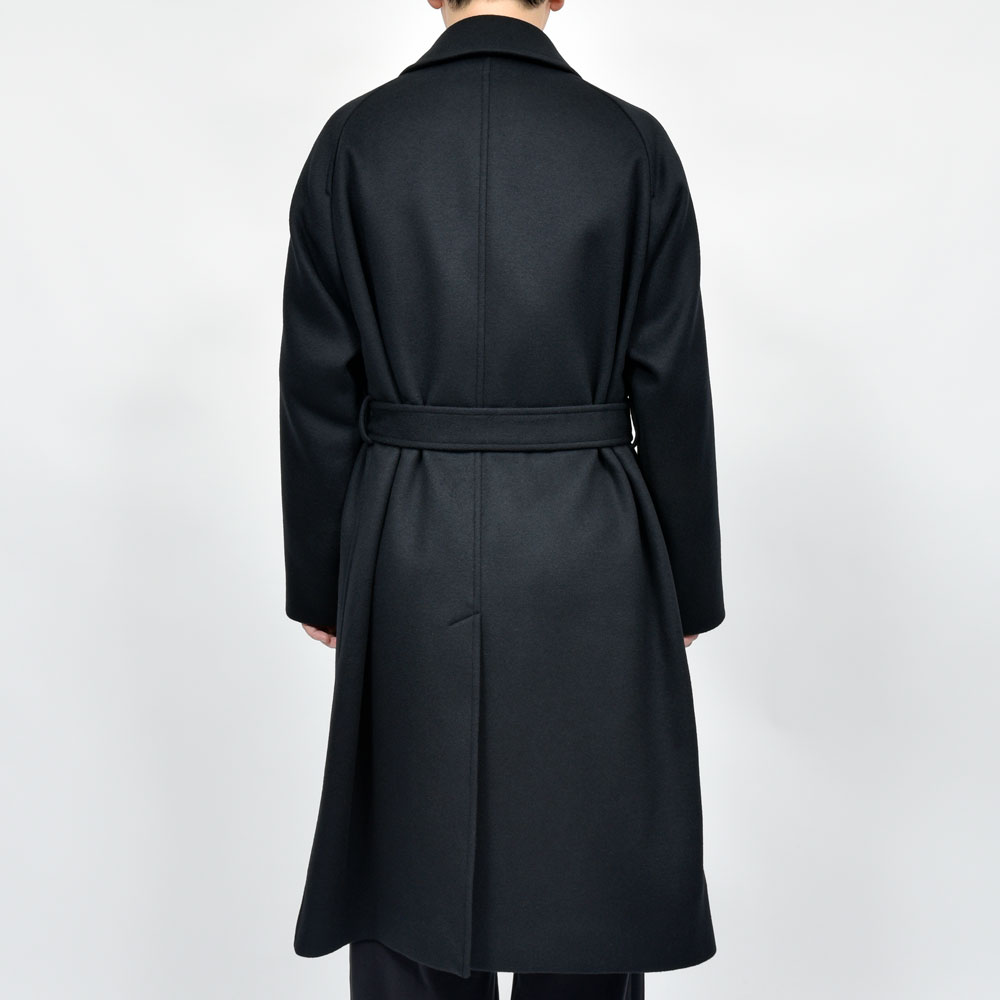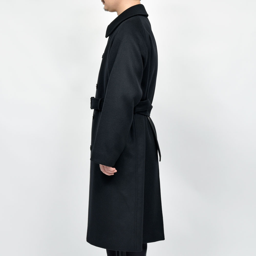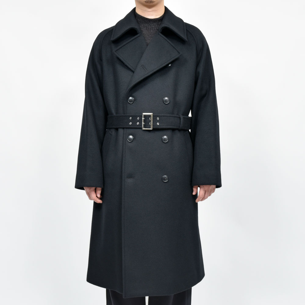 素材はウールナイロンのソフトなメルトン生地を採用、重厚になりすぎないギリギリのバランスを攻めている印象でして、軽やかに生地をなびかせて着用するというよりもしっかりと形を崩さず凛とした佇まいを表現できるタイプになっています。