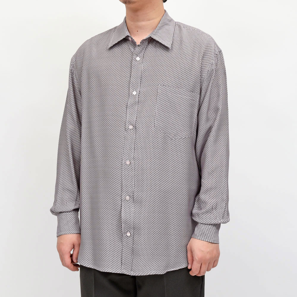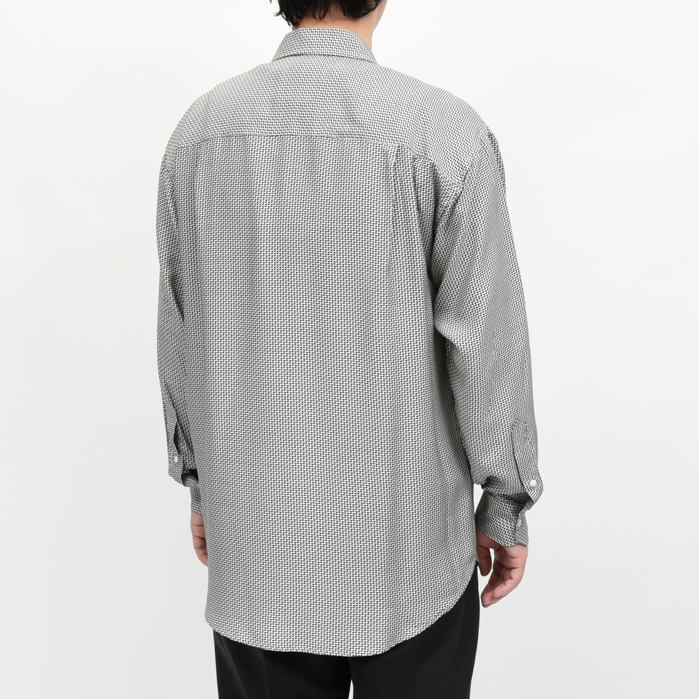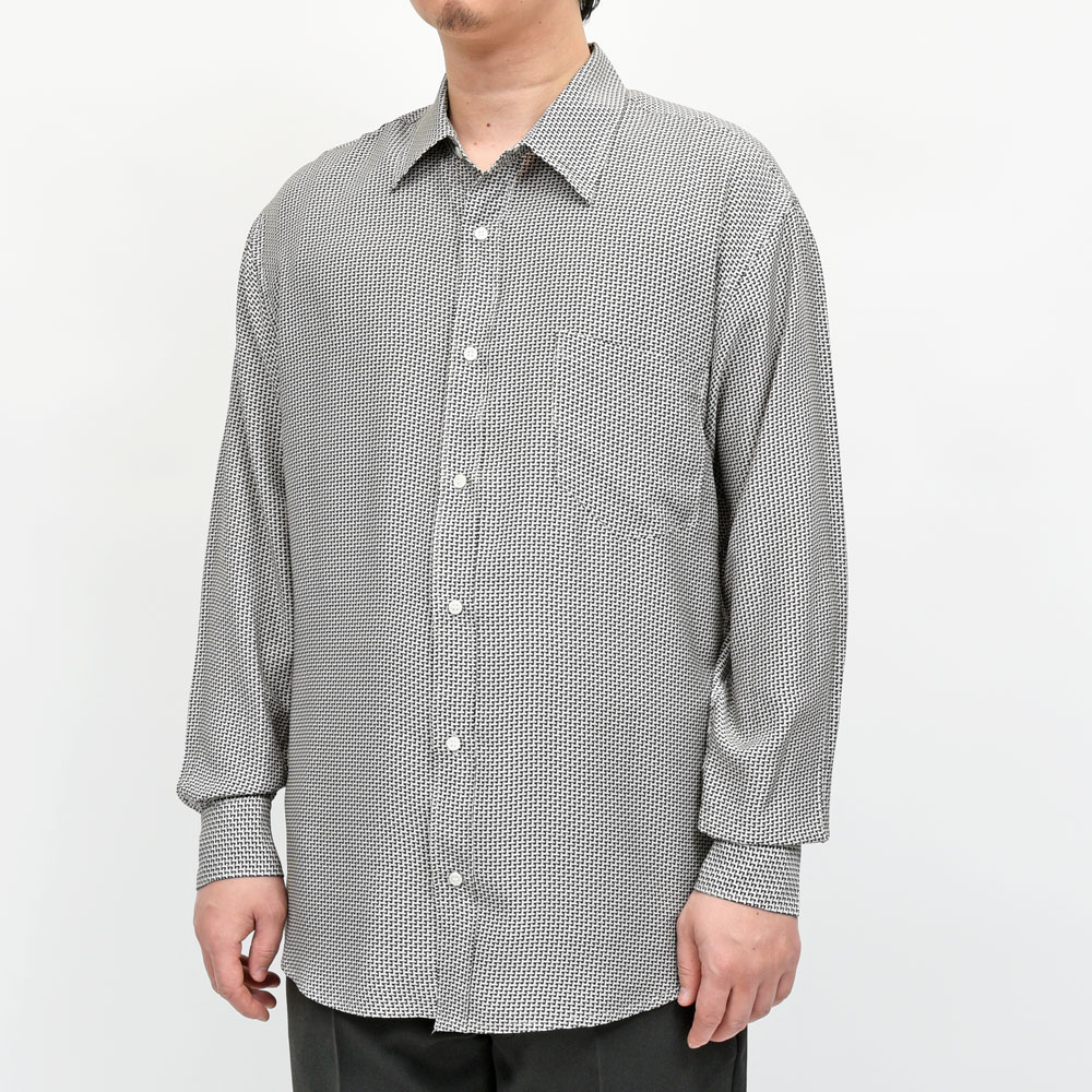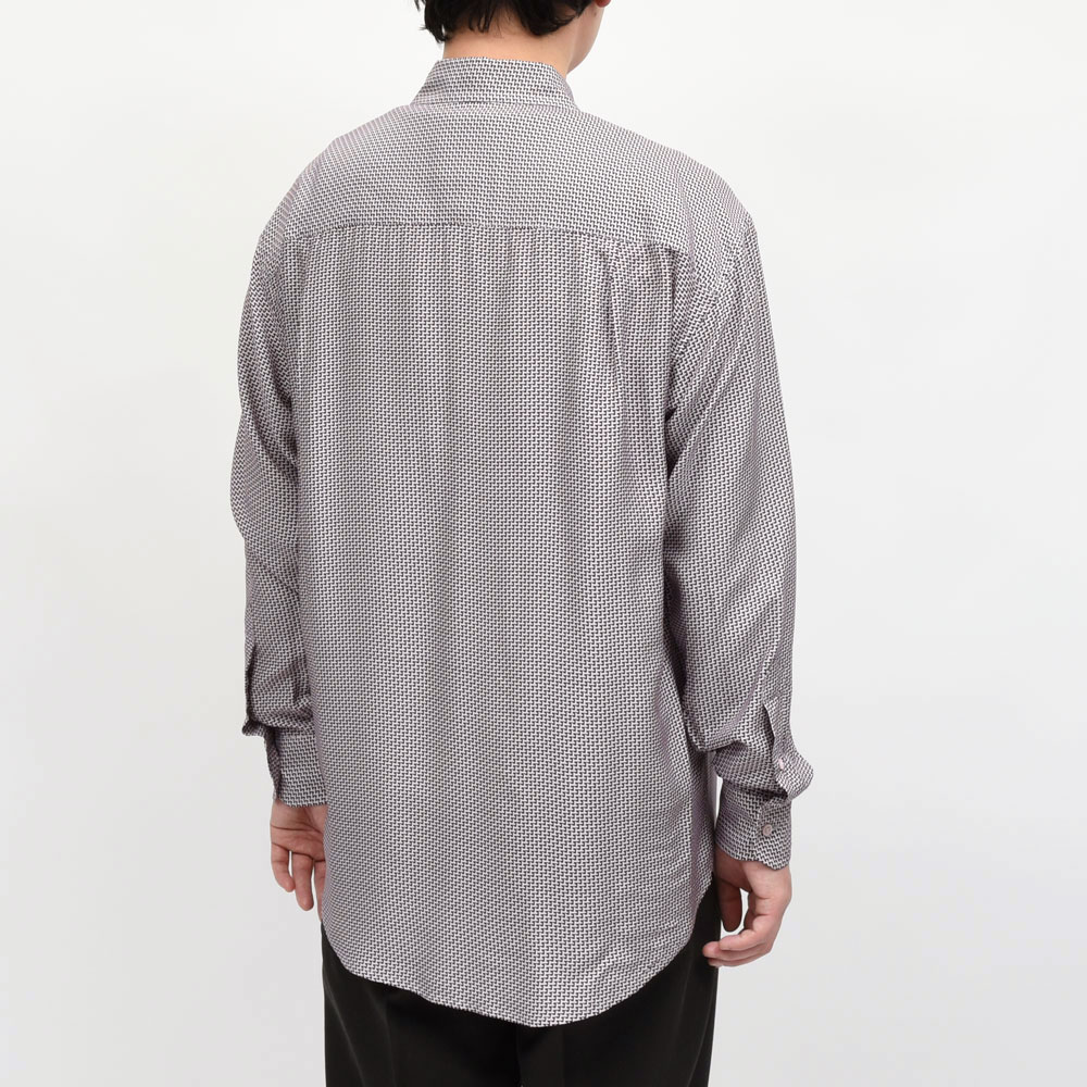 mando(マンド)の柄シャツ、今回はジオメトリックパターンになっていますが目が非常に細かいので柄が強く出過ぎず、それでいて無地にはない色気を感じさせる塩梅となっています。
