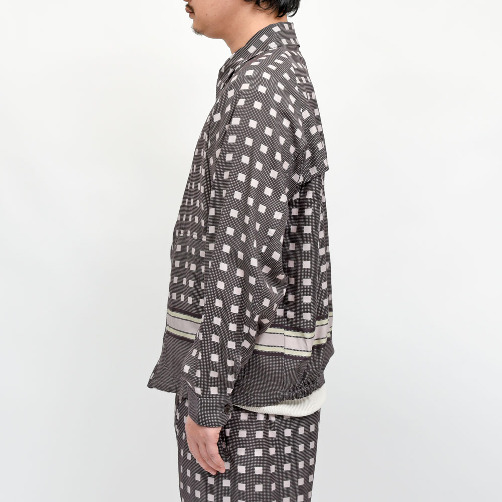 mando(マンド)らしいヴィンテージ調の柄を採用したライトブルゾン、生地自体も非常に薄手で軽やかなのでシャツの代わりとして羽織ってもらえるようなイメージの一着になっています。