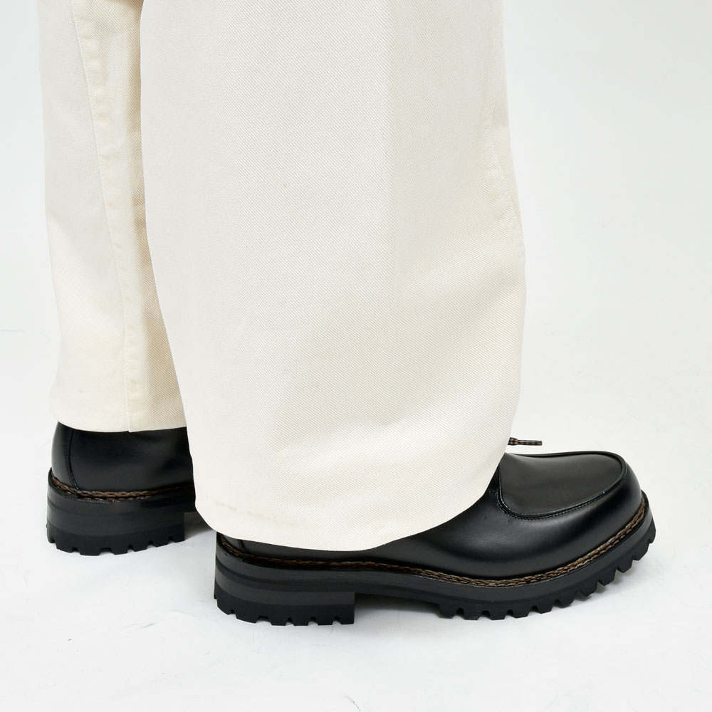 ザ・登山靴というボリューム感ではありますが、贅沢にもフランスのデュプイ社のアニローカーフを用いることでカジュアルとラグジュアリーのバランスを上手く表現しています。