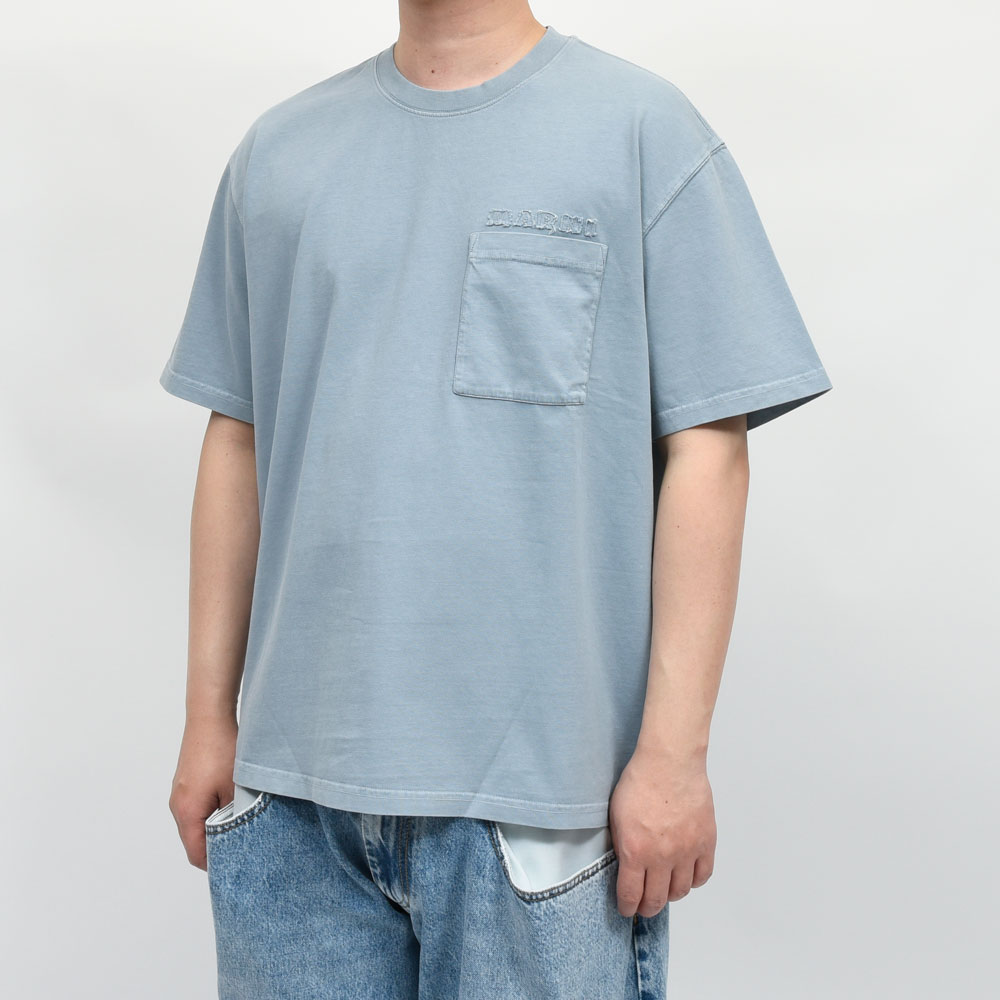 MARNI(マルニ)のポケット付きTシャツ、リラックスしたフォルムに同色でまとめられたロゴがフェードした色合いとマッチしたデザインになっています。