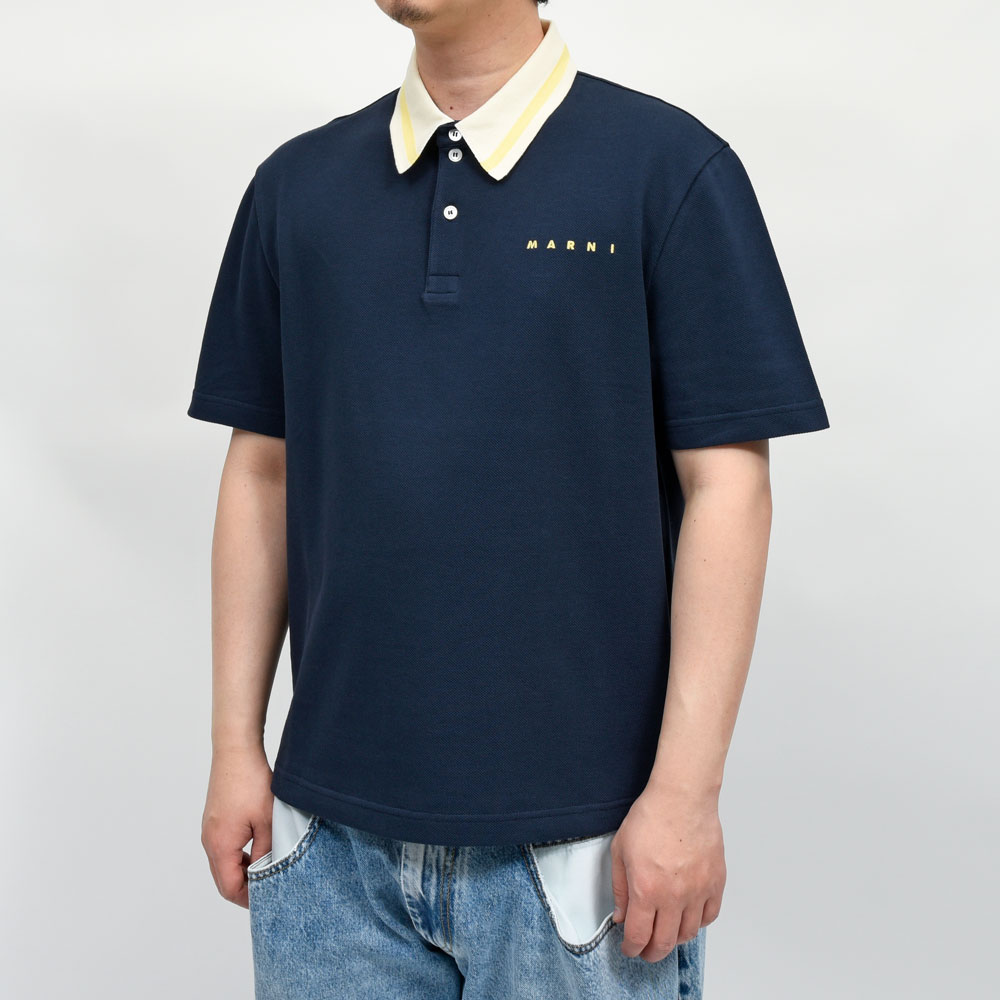 MARNI(マルニ)のピケポロシャツ、シンプルになり過ぎず、程よく茶目っ気の効いた一着になっています。シルエットはベーシック、細過ぎず太過ぎず中庸なバランス、一枚着としてもインナーとしても有用に活躍してもらえる存在です。