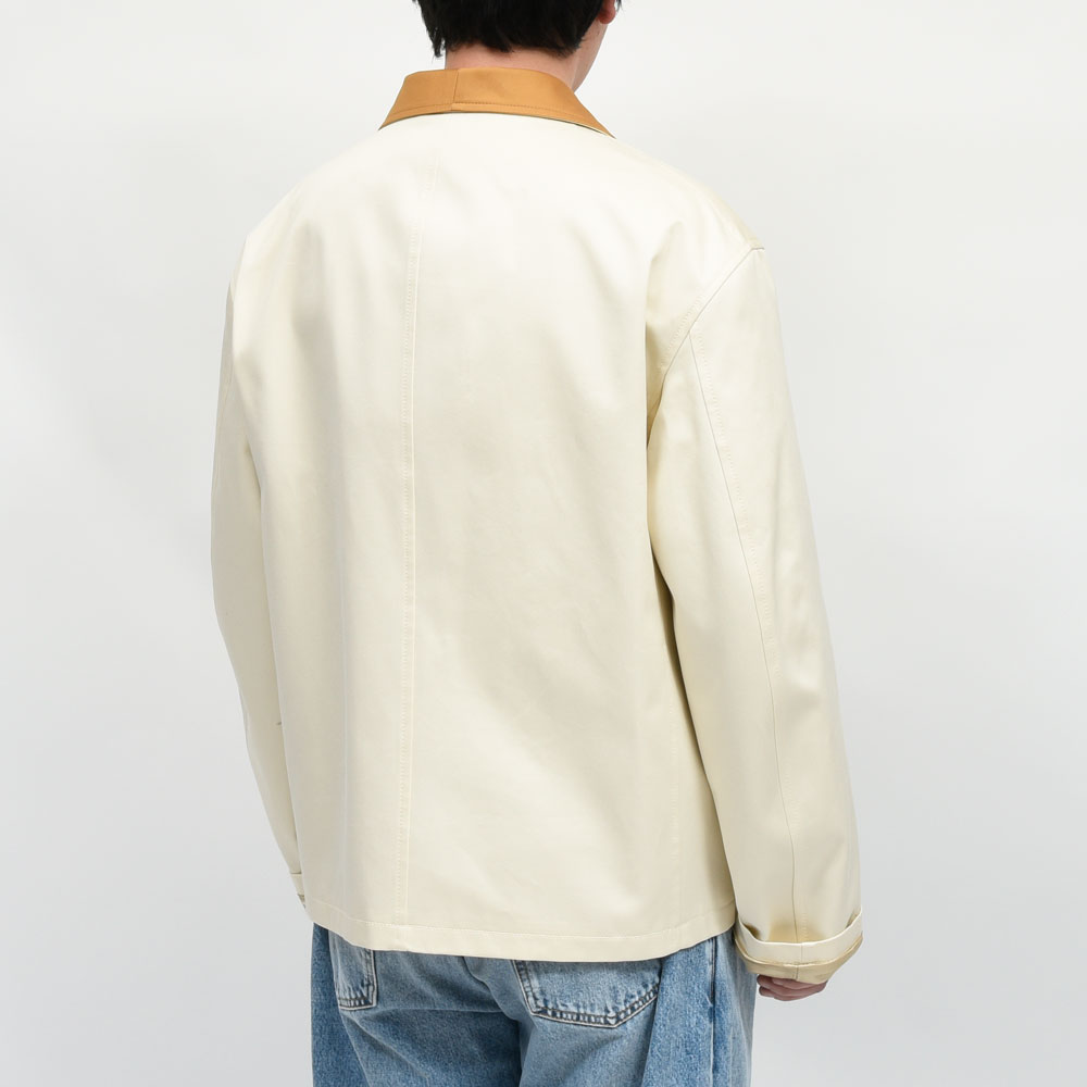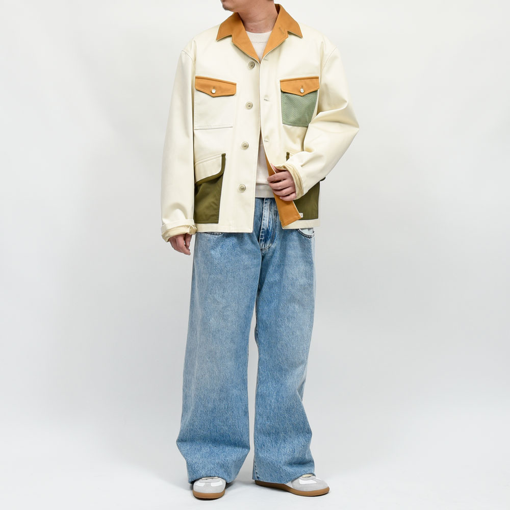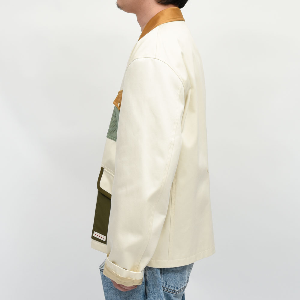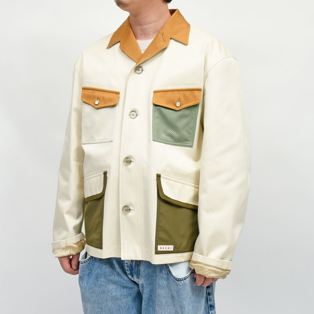 MARNI(マルニ)らしいギミックやカラーリングを採用したワークジャケット、襟部分と上段ポケットのフラップはライトブラウン、下段ポケットはオリーブを基調とした配色になっています。多色使いのデザインではありますがリアリティのあるシルエットになっている為、意外にも取り入れてもらいやすいデザインに。