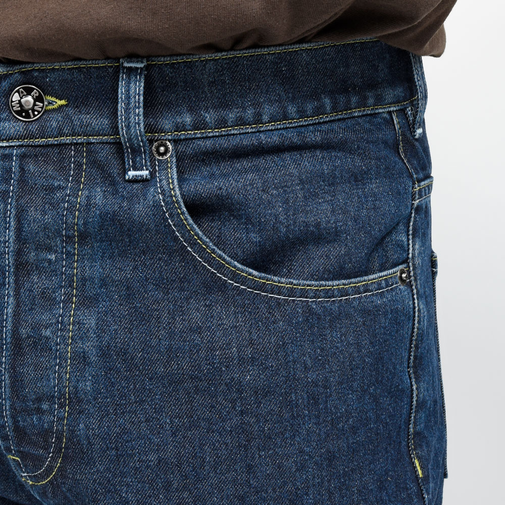 またステッチとコインポケットのロゴはライトグリーンのカラーを使うなど、ポップなムードを付加。もちろんボタンもオリジナルのものを採用することで独自性を高めています。