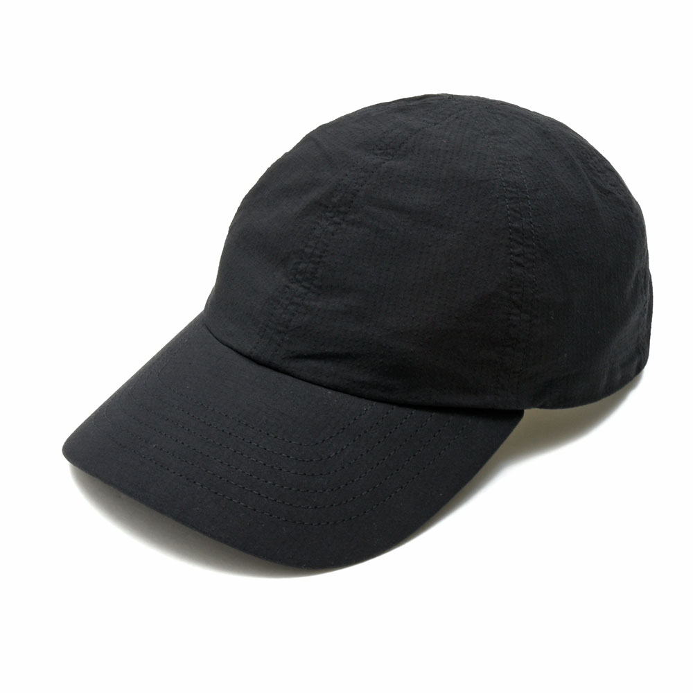 洗いをかけたコットンのリップストップ生地を採用したバケットハット、ブラックながらも軽やかな印象で被っていただける仕上がりに。
