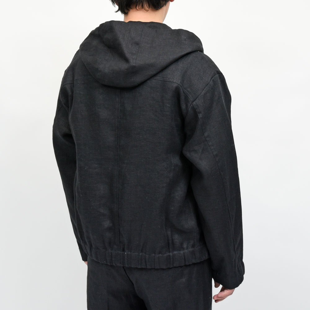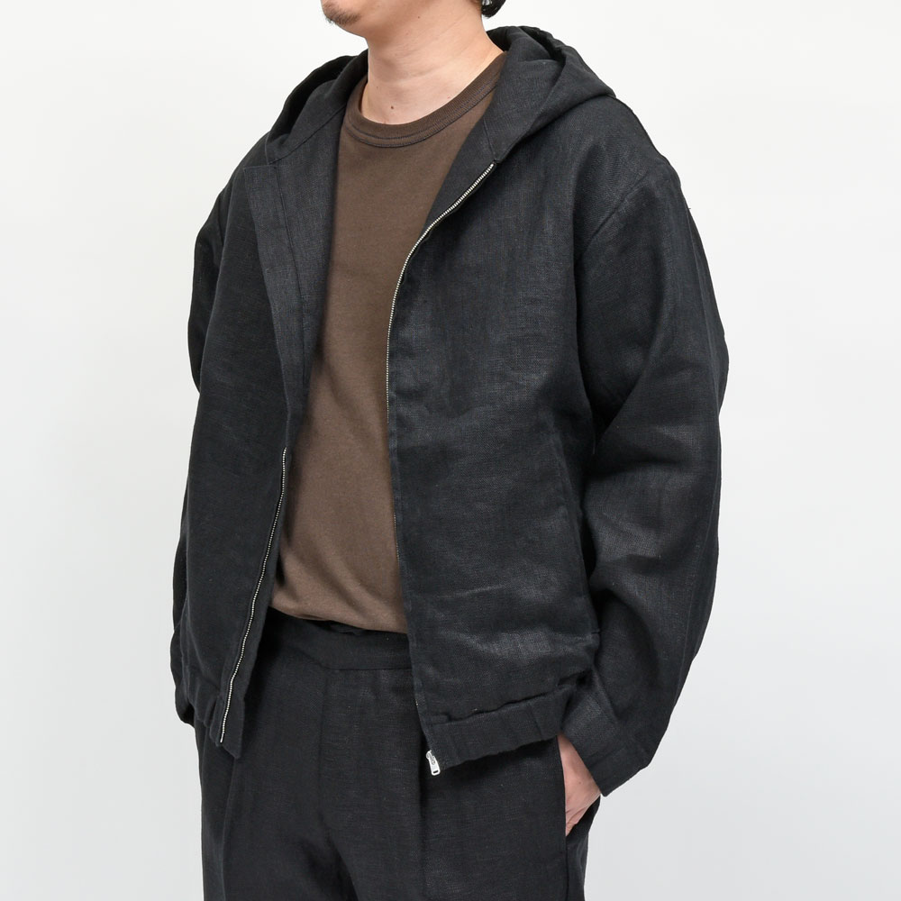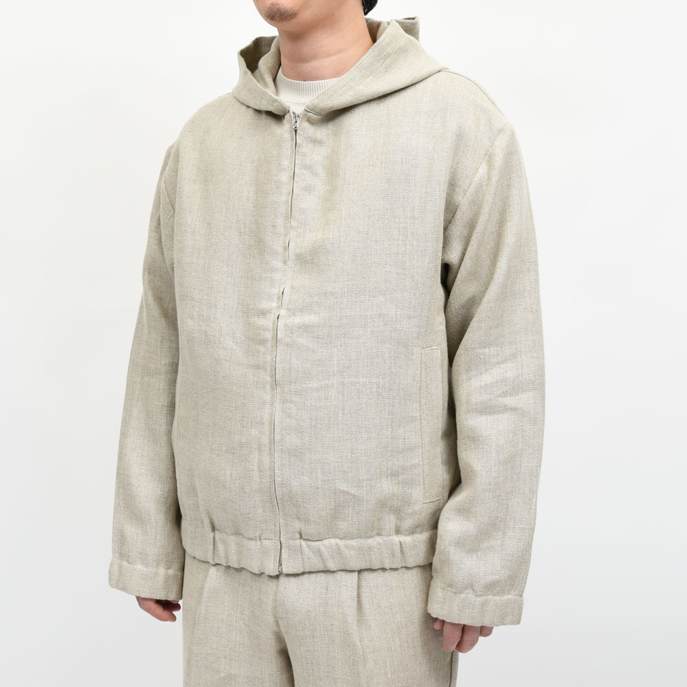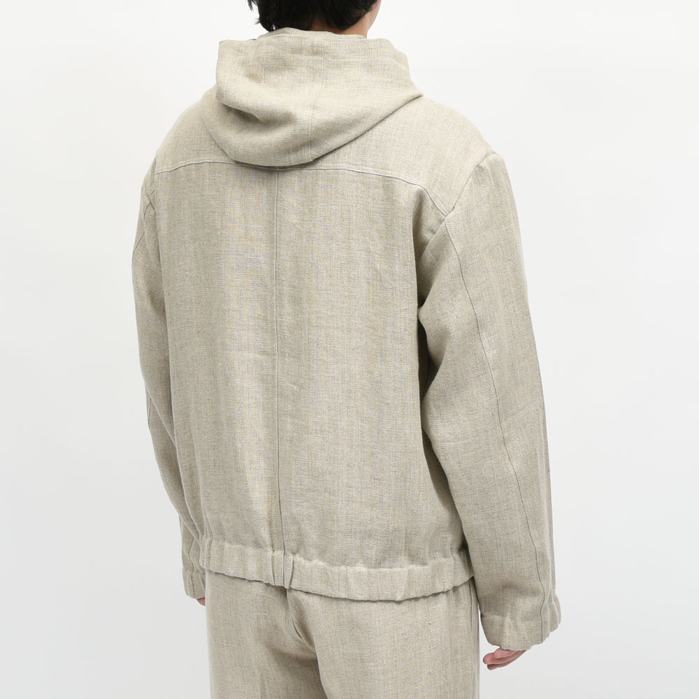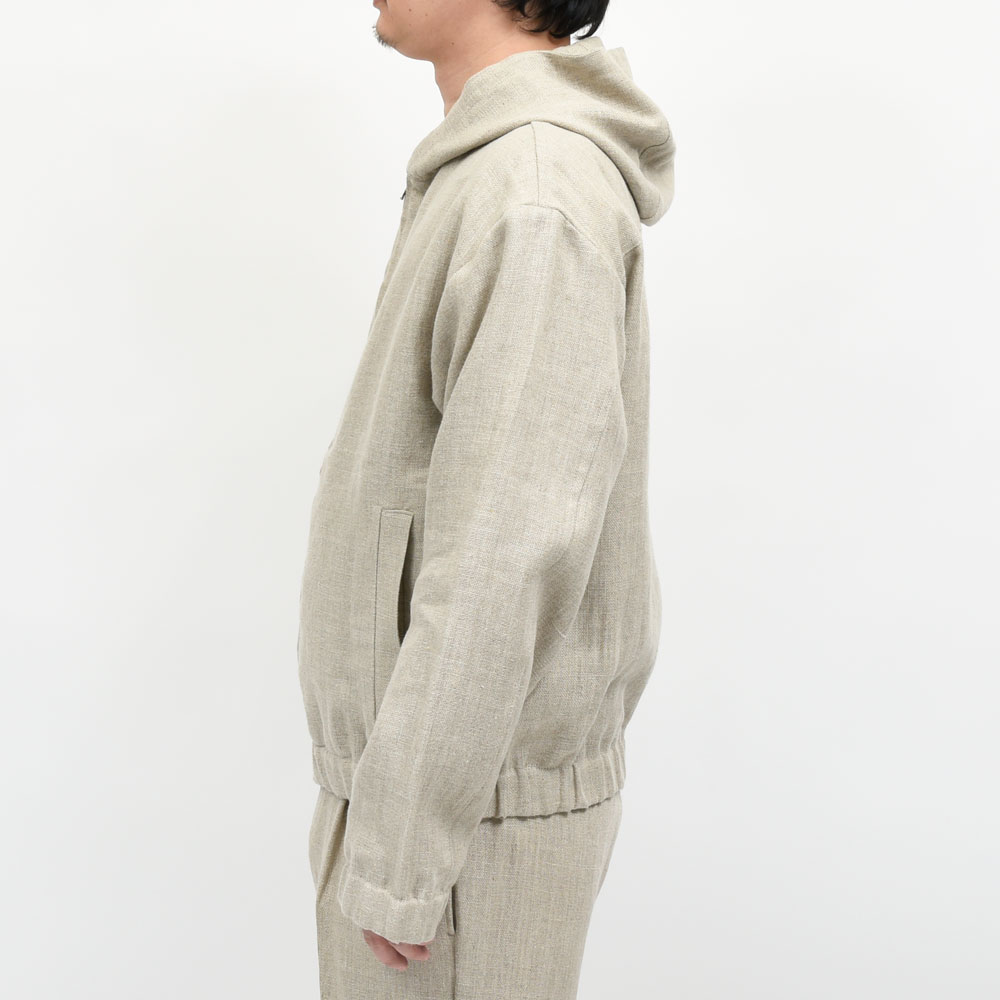 アイテムとしては非常にシンプルなフーディブルゾン、ざっくりとした見栄えでありながらも実際のタッチは非常に滑らか、それに呼応するように程よい光沢感も持ち合わせているため、カジュアルアイテムながらも抜けすぎない印象になっています。