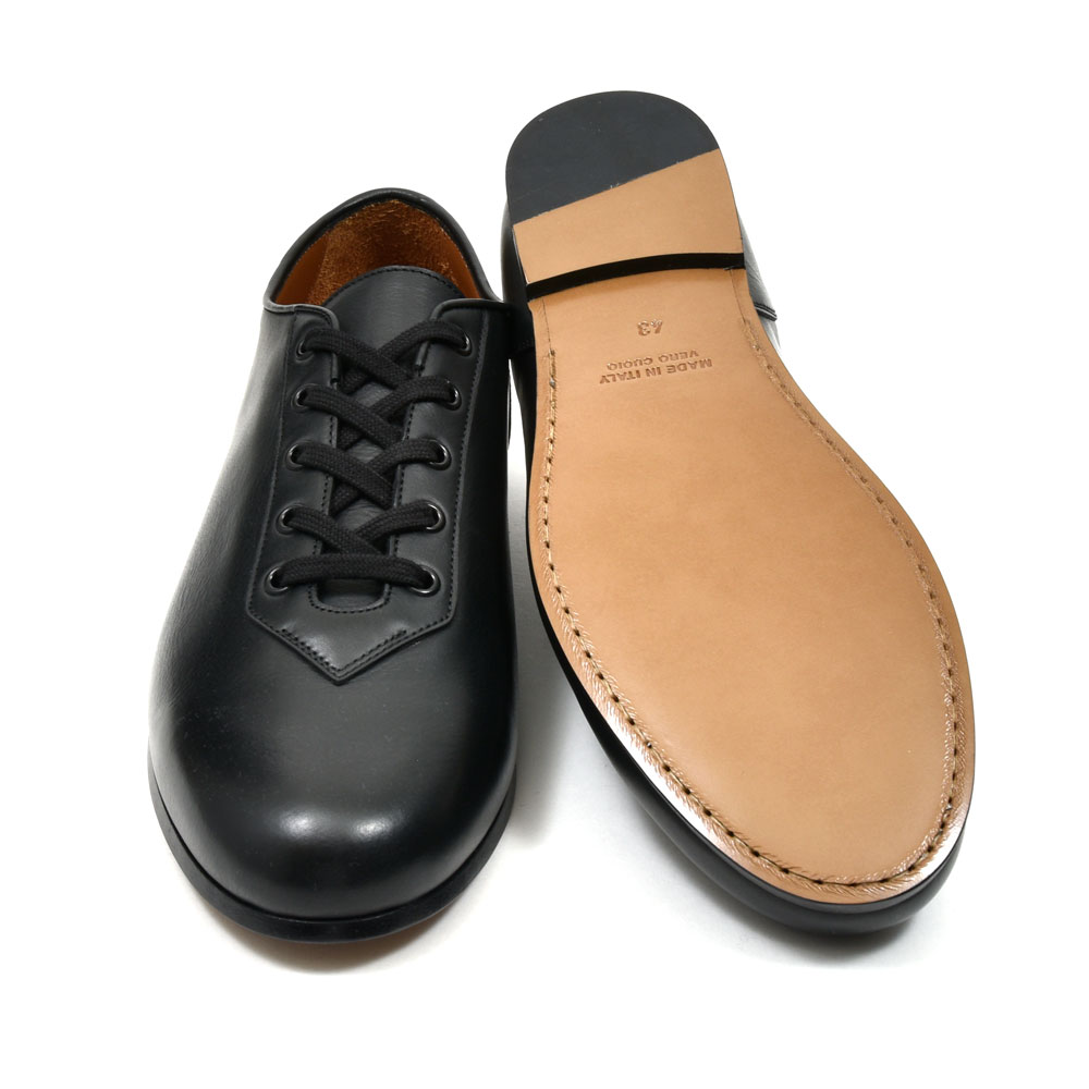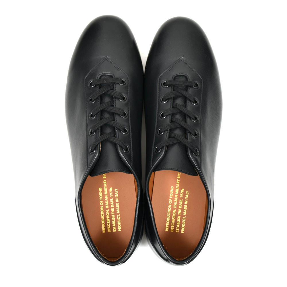 REPRODUCTION OF FOUND(リプロダクション オブ ファウンド)でも少し毛色が異なるタイプのシューズが登場です。1970年代にベルサリエリというイタリア軍の自転車部隊で採用されていたレザーシューズをベースに同ブランドらしくモディファイした一足。ちなみに自転車部隊の主な任務は偵察などだったそうです。