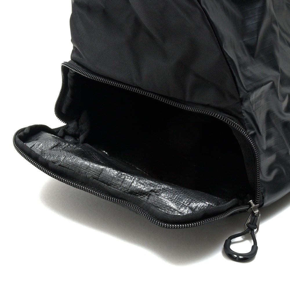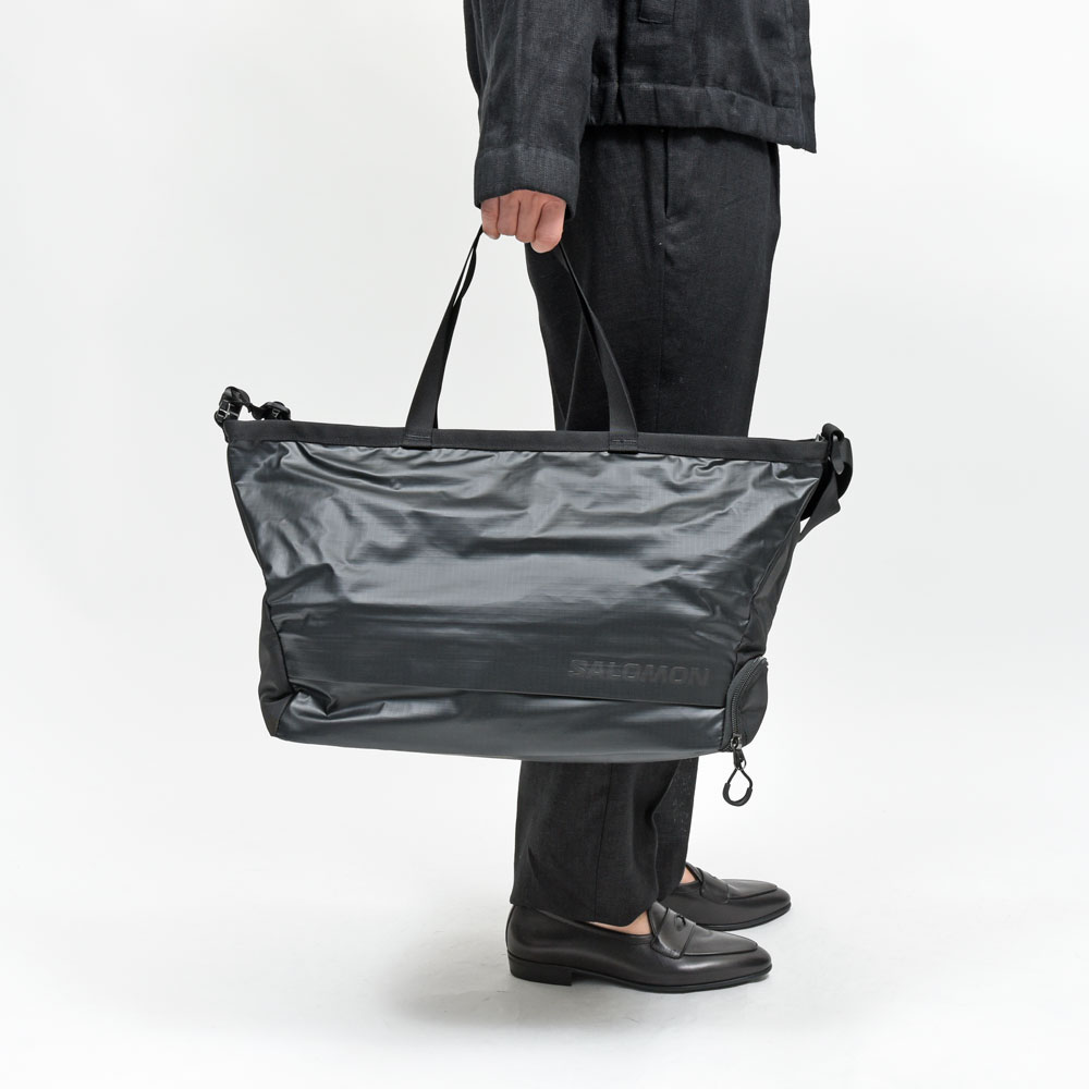 SALOMON(サロモン)でリリースされていたスキーブーツバッグに着想を得て作られたExtended Totebag。オールブラックで纏められた潔いバッグになっていまして、ギア要素を多分に感じさせるデザインになっています。