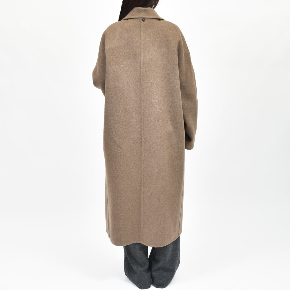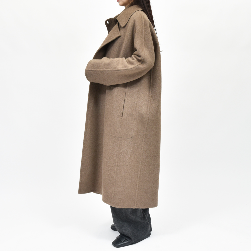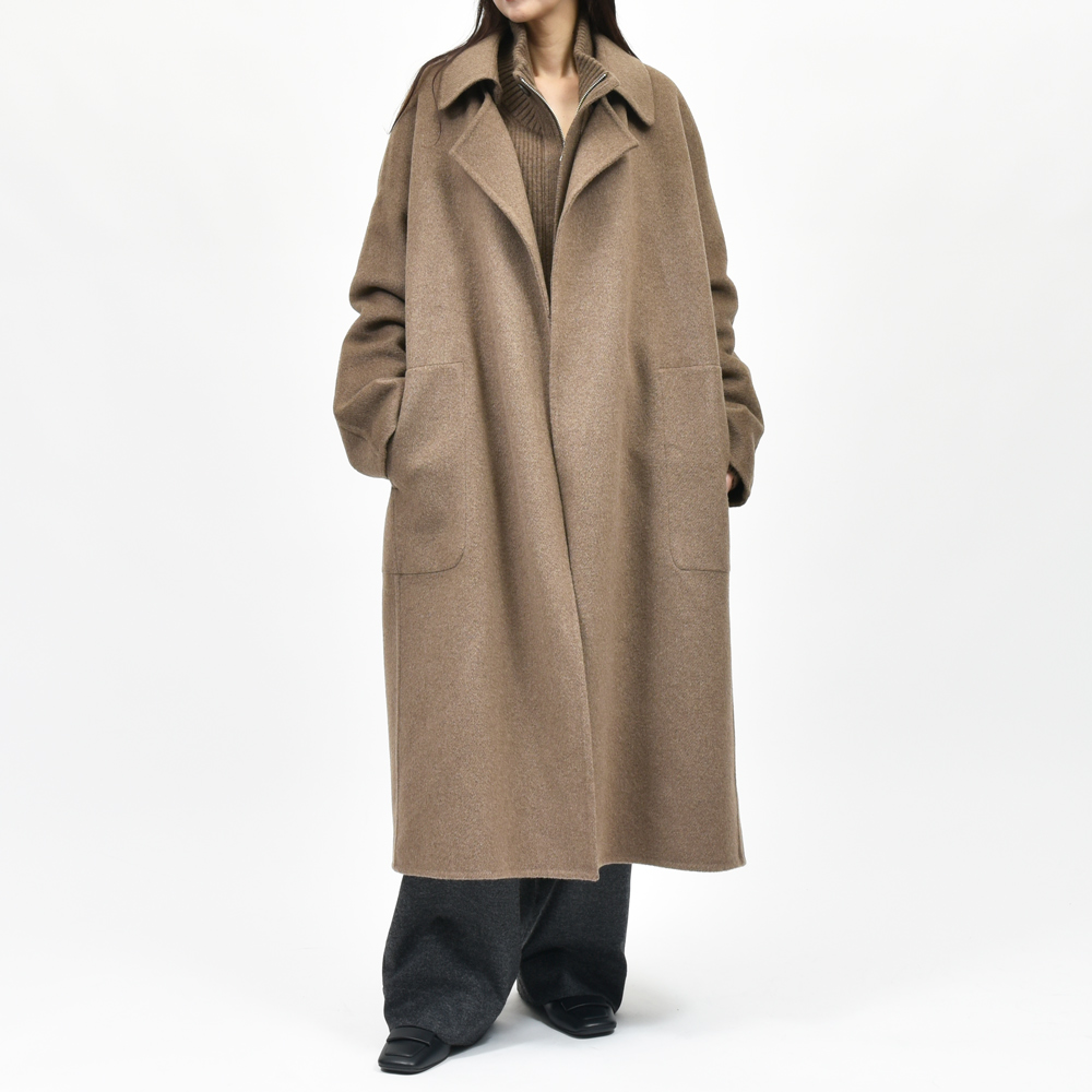こちらは定番的に展開されているコート、無染色ヤク100%のダブルフェイスを採用した優雅な一着。洋服が疎い方が見ても上質だとわかるレベルの素材を採用しています。