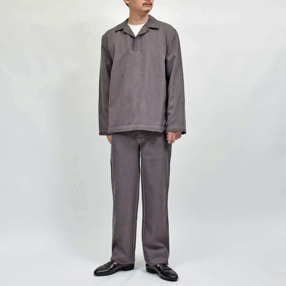 久々の取り扱いになるSUNNEI(スンネイ)、以前よりも一層クリエイションが洗練されているように感じます。ウールのスキッパーシャツにオーバーダイを施した一着はプラムのような独特のカラーになっていまして、他にはない独自性を生み出しています。