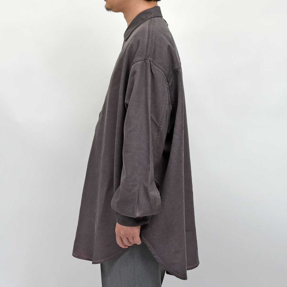 という事で、こちらのメガオーバーシャツ。ご覧の通りではありますが緩いを通り越してメガなサイジングになっています。フェード感のある風合いにマッチsしたリラクシングなシルエットは全体的にストリートな雰囲気を醸し出しています。とはいえ、作りの面ではかなり丁寧に作り込まれているのもポイント。
