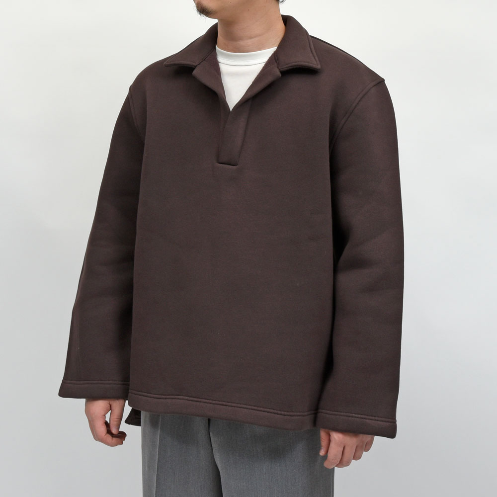 今シーズンのSUNNEI(スンネイ)はこういったブラウンやプラムのような色合いが推しだそうで、シャツやパンツなどにも採用されています。こちらはスウェット生地で作られたスキッパータイプの一着。