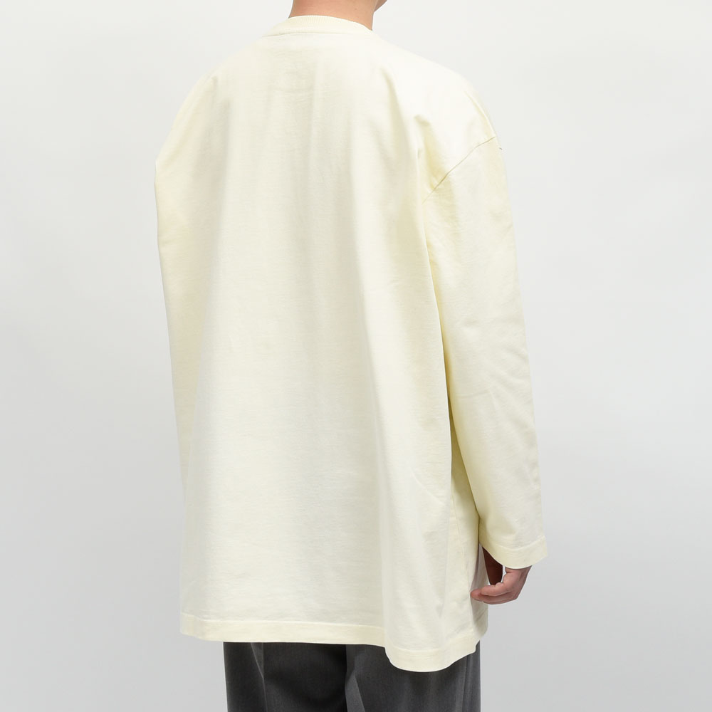 生地感はしっかりした厚手のカットソー生地を採用。シルエットは肩を落としたものになっていまして、着用するだけでしっかりと存在感のあるアイテムになっています。