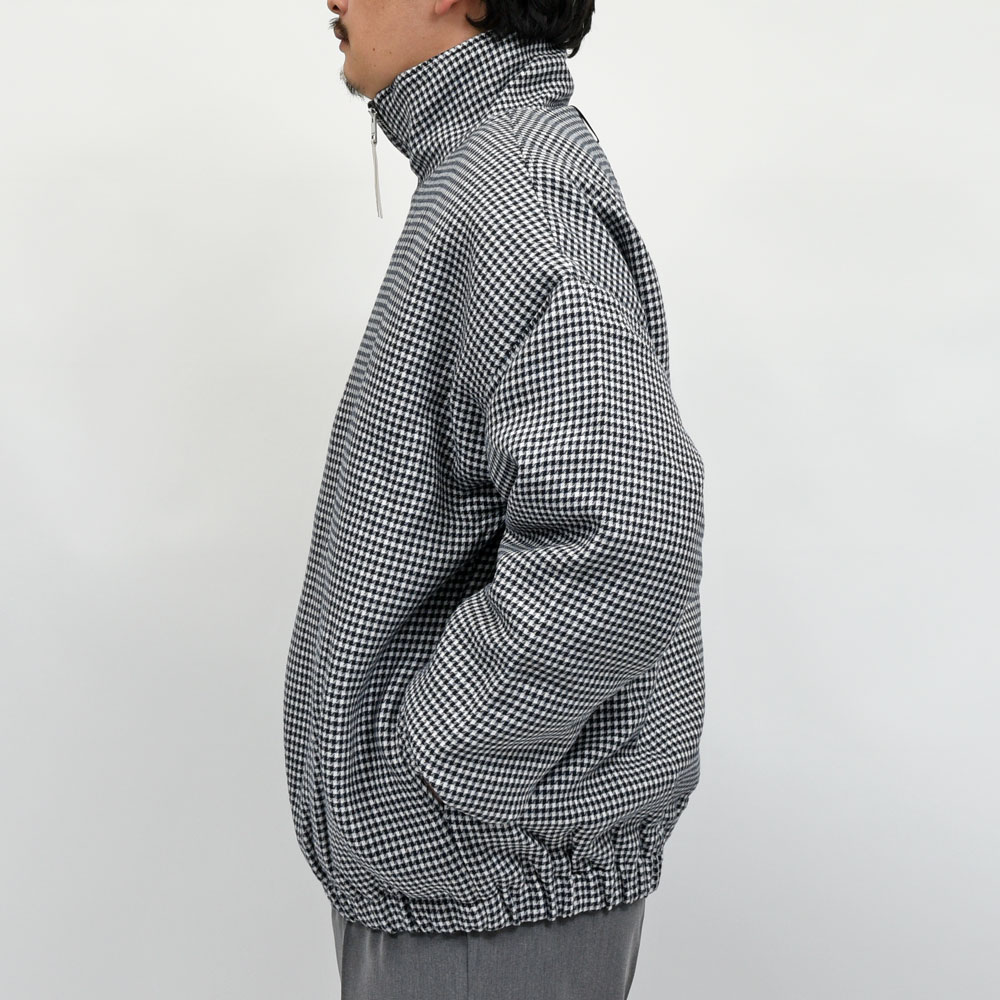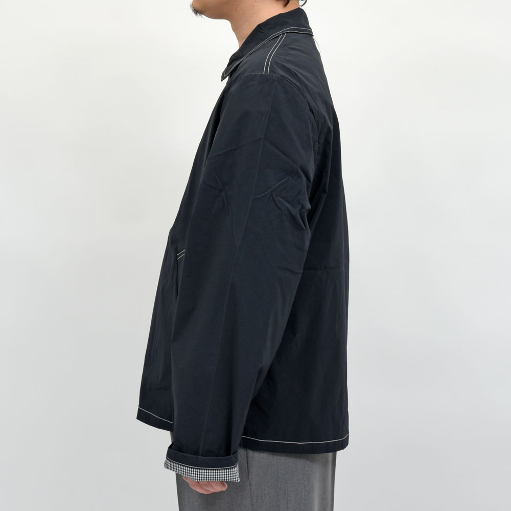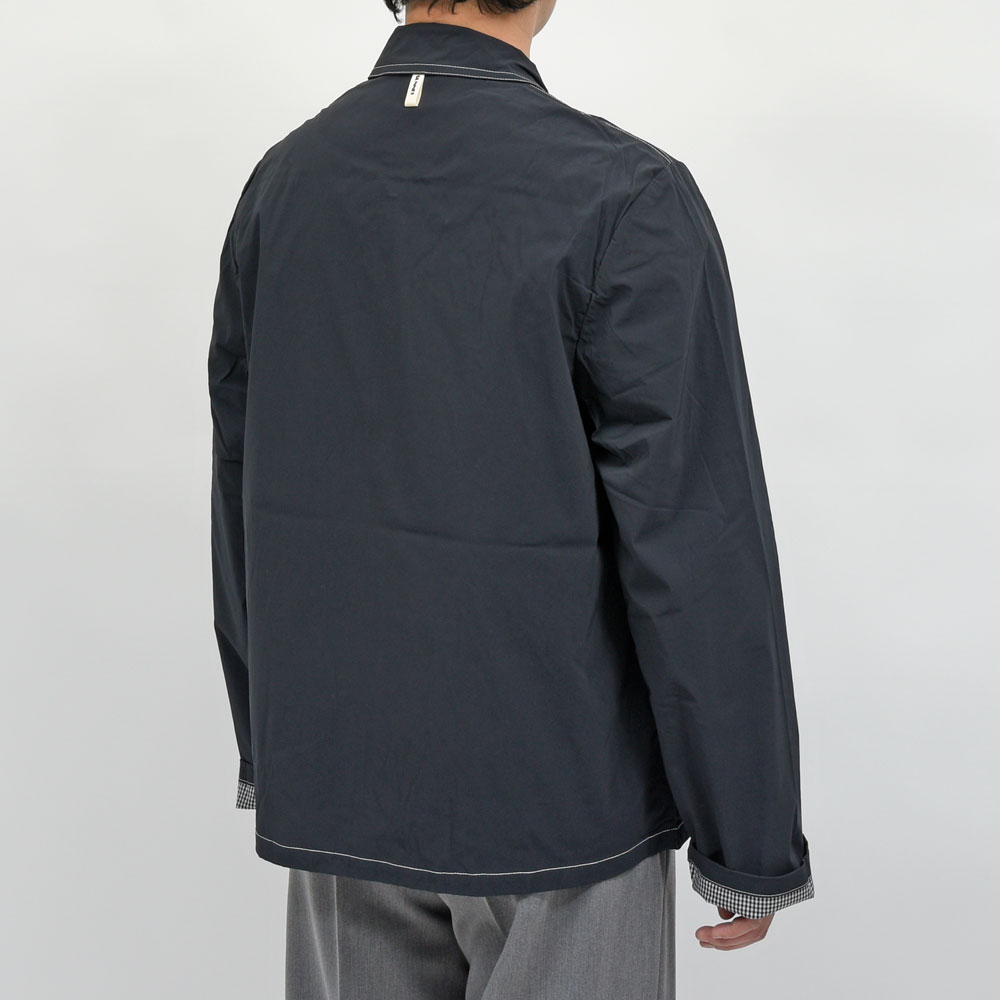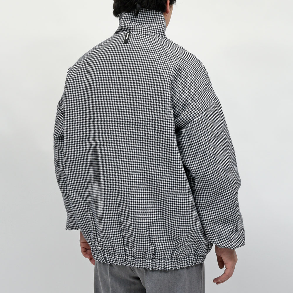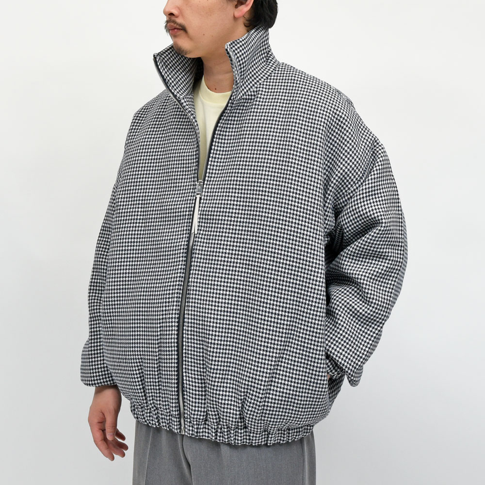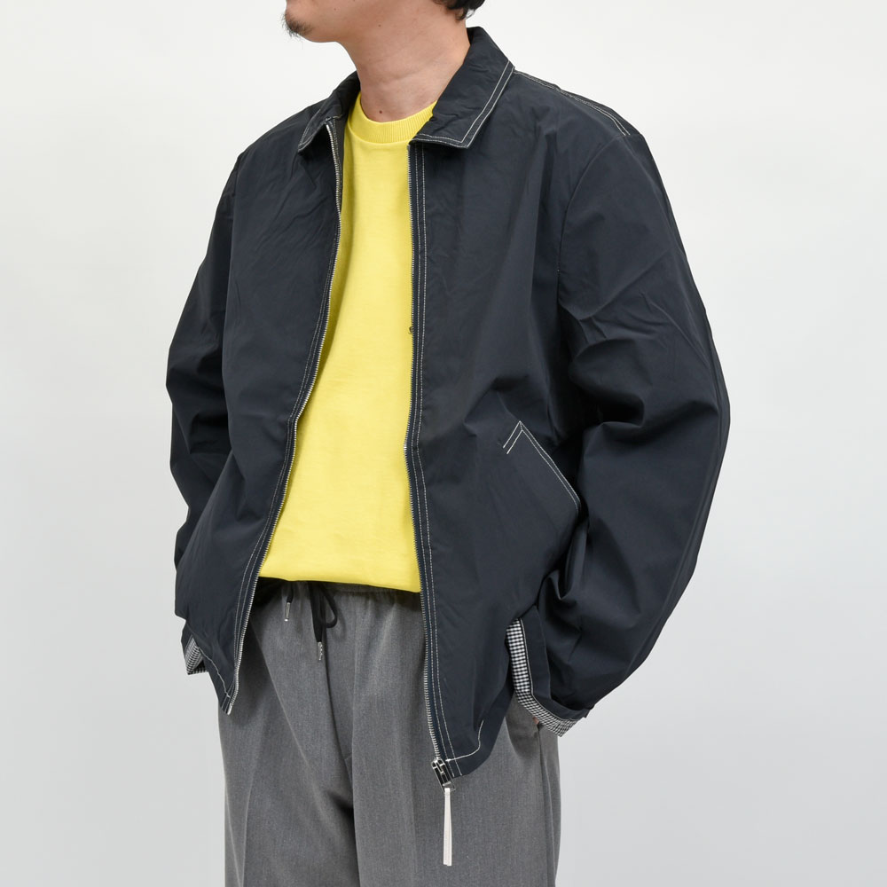 また裏地はチェックを採用、表側のステッチもあえてホワイトを採用することによって全体的にシンプルになり過ぎない為の配慮が伺えます。シーズンを問わず着用可能な一着、程よいデザイン性が活きたブルゾンになっています。