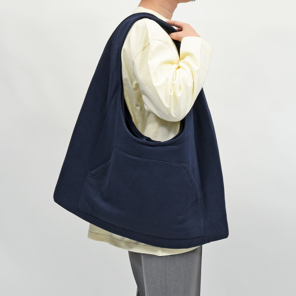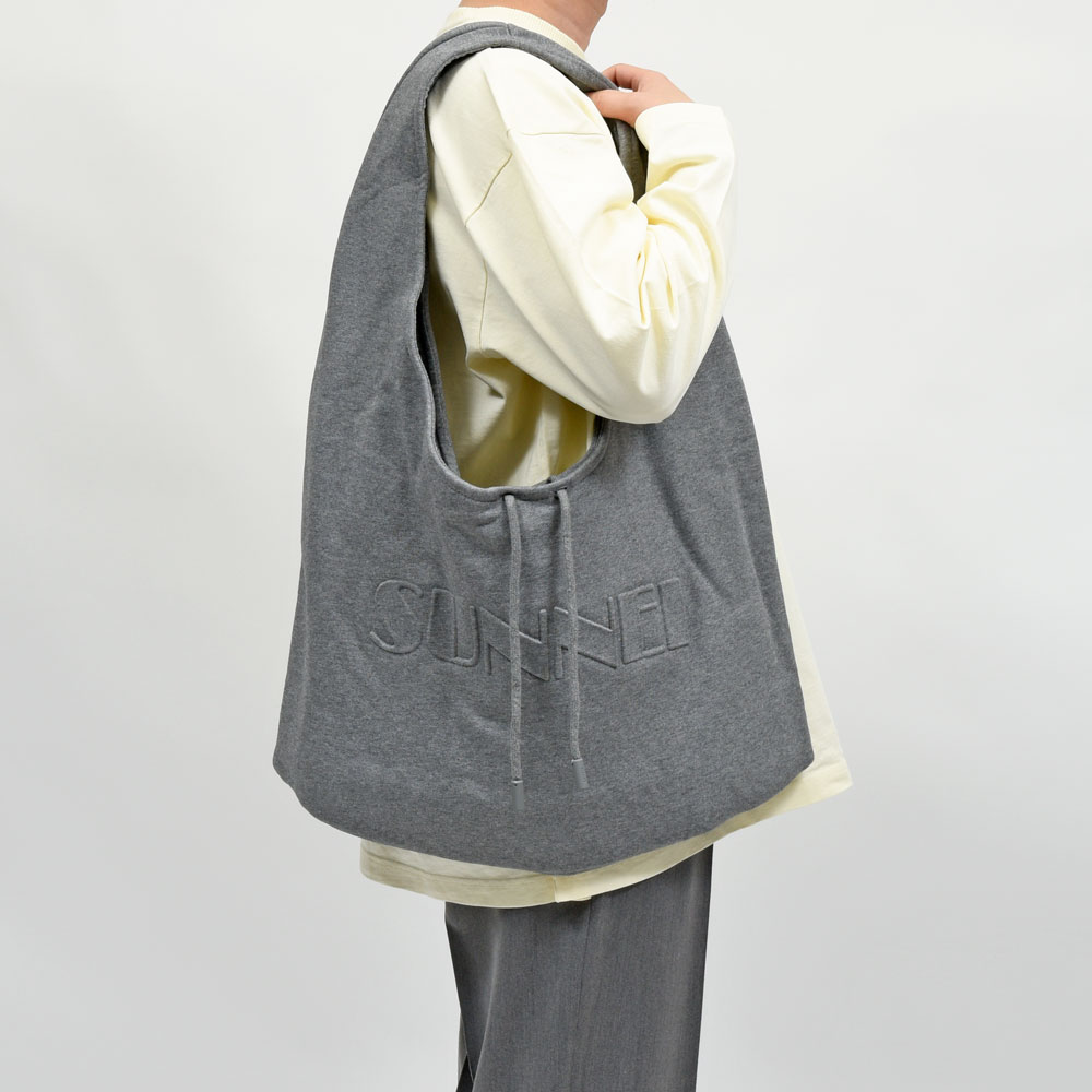 SUNNEI(スンネイ)らしい遊び心溢れるバッグ、スウェットをバッグにトランスフォームさせたようなデザイン。フーディに使われるドローコード、カンガルーポケットのディティールをバッグに落とし込んでいまして、かなり凝ったアイテムに仕上がっています。