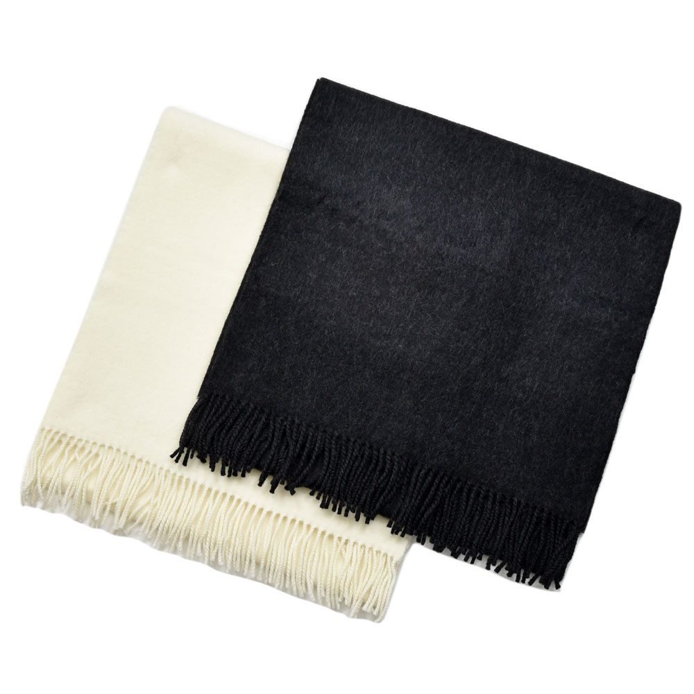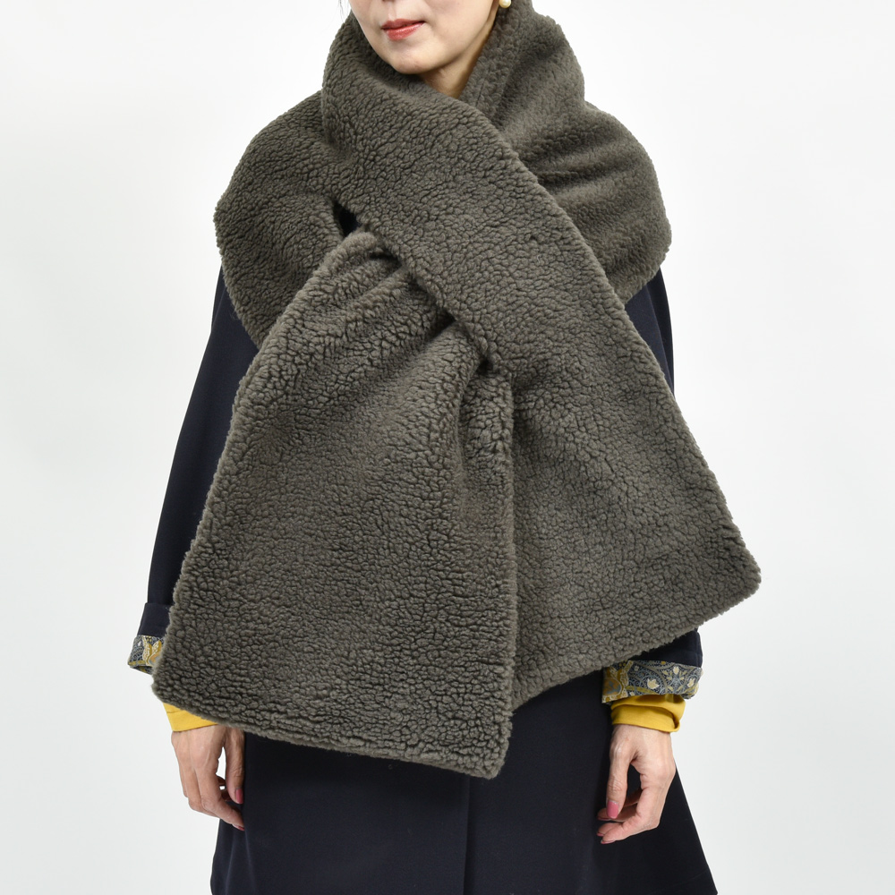 THROW(スロー)における秋冬の定番的存在であるショール、くるくるとしたプードルのようなボアが特徴的な仕上がりに。