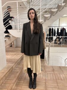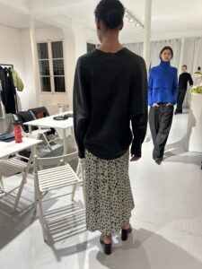 勿論、ショーピースになるので、着用しているものをそのままはオーダーしませんが、シーズンのブランド側の発信とトレンドの色や着こなしなど参考にすることは多々あります。