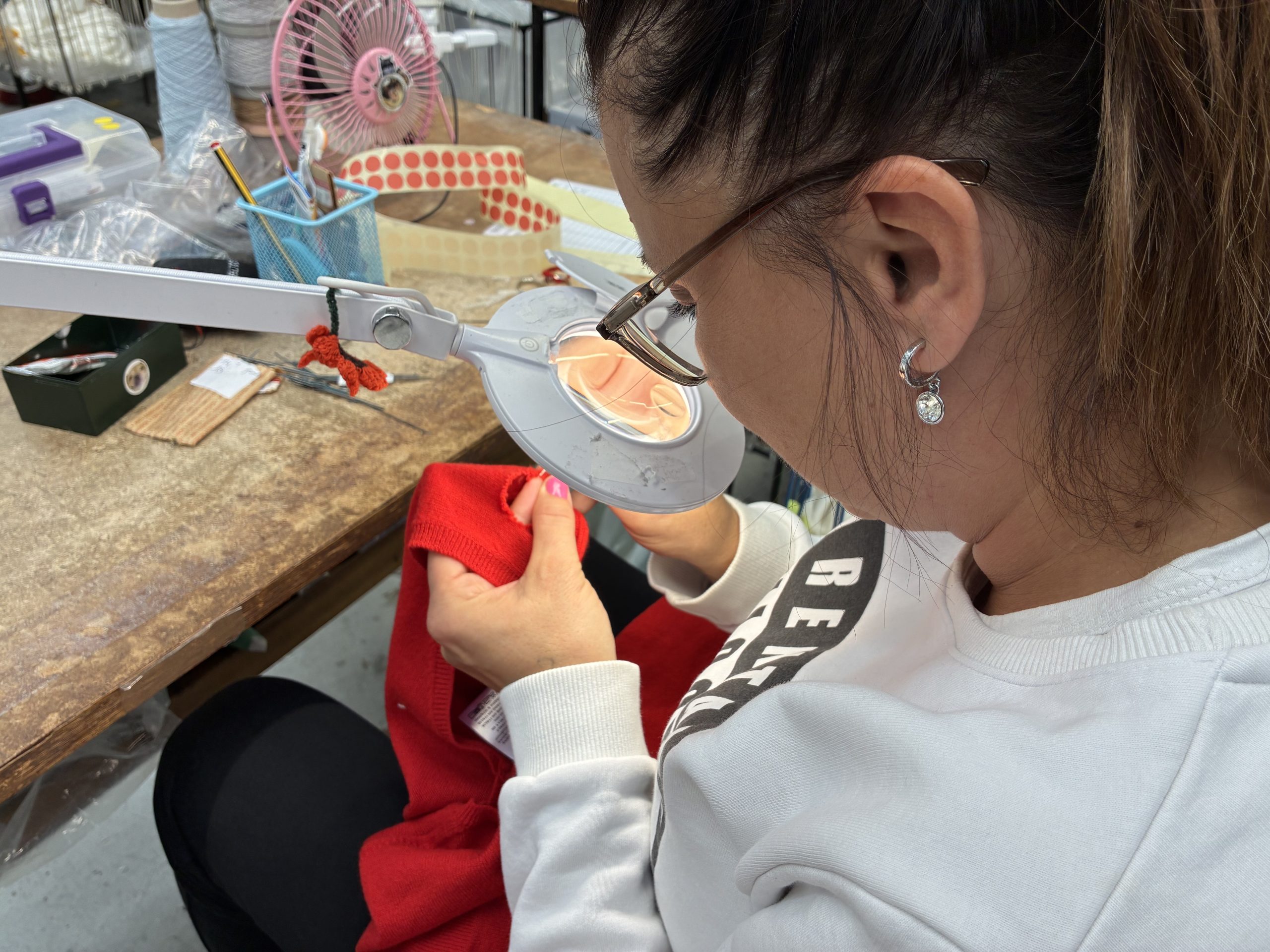 最たる例がこちらの作業でして、↑ほつれや穴あきを直す工程の技術取得におよそ3年を要するため、お給料も高いんだとか・・・
