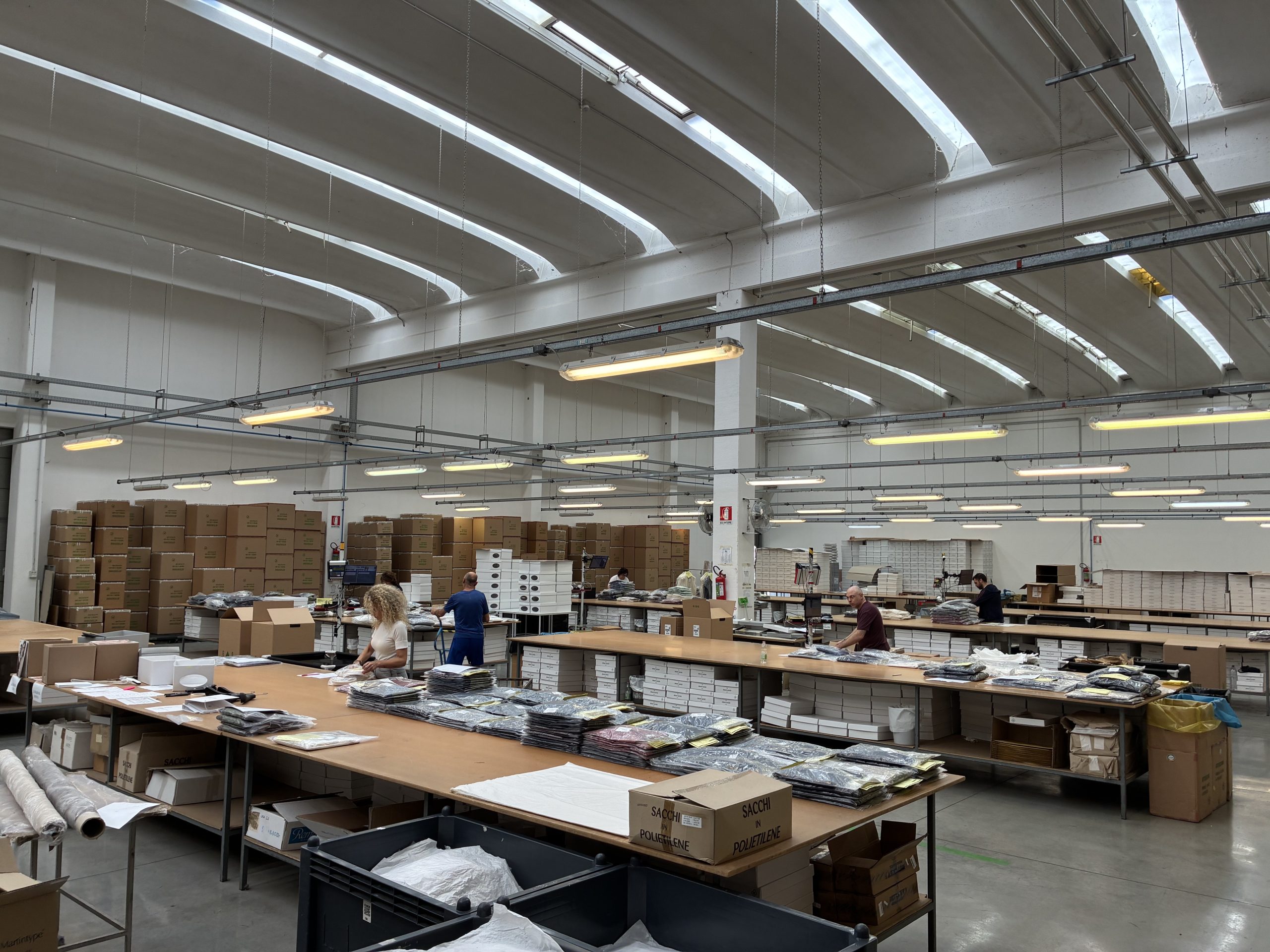 自社生産90% その他(OMEなど)生産10%、紡績以外は全てを自社で行っているイタリア屈指・・・いや世界屈指のファクトリーです。
