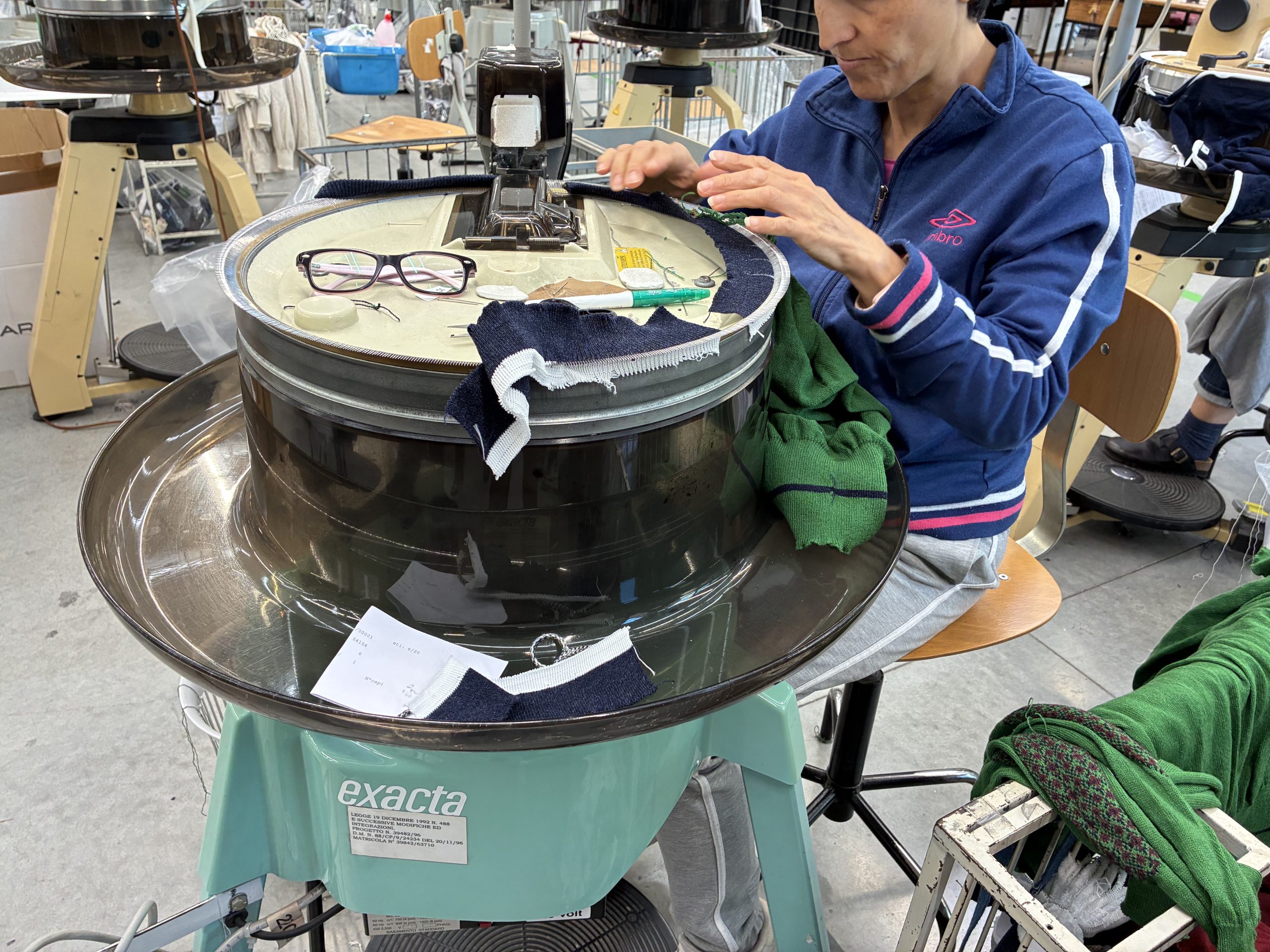 糸に加工を施し、各パーツ毎に編み立て、補正を行い、洗い・アイロンをかけて検品・出荷という一連の流れは大体どこのファクトリーも同じになりますが、500人前後のスタッフを要するGRAN SASSOでは、一工程毎の作業者人数も多く、生産効率と価格のバランスはここからきているんだな・・・と🤔