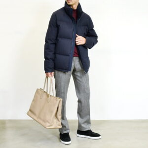 こちらはSEASE(シーズ)のダウンにIGARASHI TROUSERS(五十嵐トラウザーズ)のスラックスを組み合わせたラグジュアリースポーツなスタイリングです!