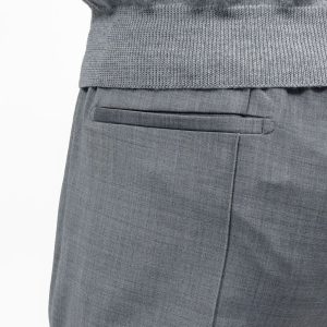 ディテールは変わらず、お馴染みの永久クリースが前後に入り、渡りには程良いゆとりを持たせつつも全体はすっきりとした細身のシルエット。