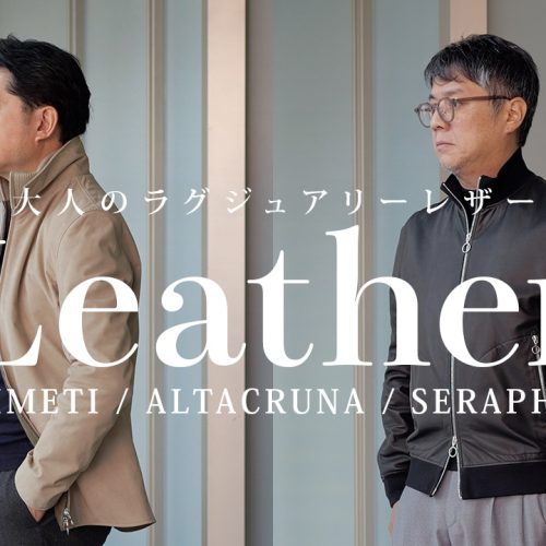 これからの季節ですとSEASE(シーズ)などのラグジュアリースポーツなテイストや、 ADORNI(アドルニ)のやや緩めのサイズバランスのアウターに合わせることでモダンに見せるのがおすすめです。