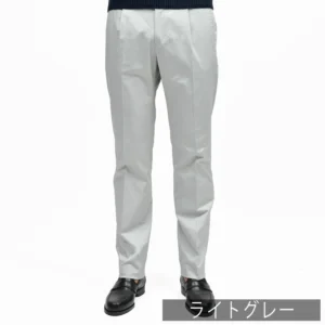 ハリのあるタッチのコットンは上品な光沢があり、粗野な綿パンではなくジャケットやシャツスタイルなどにも合わせれるクリーンな佇まいです。