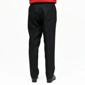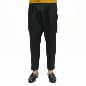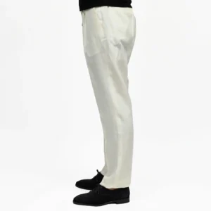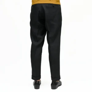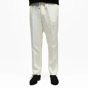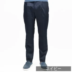 渡りにゆとりを持たせつつ、裾にかけて効いたテーパードシルエットが肝でして、どんな方も美しく穿ける中庸なシルエットです。